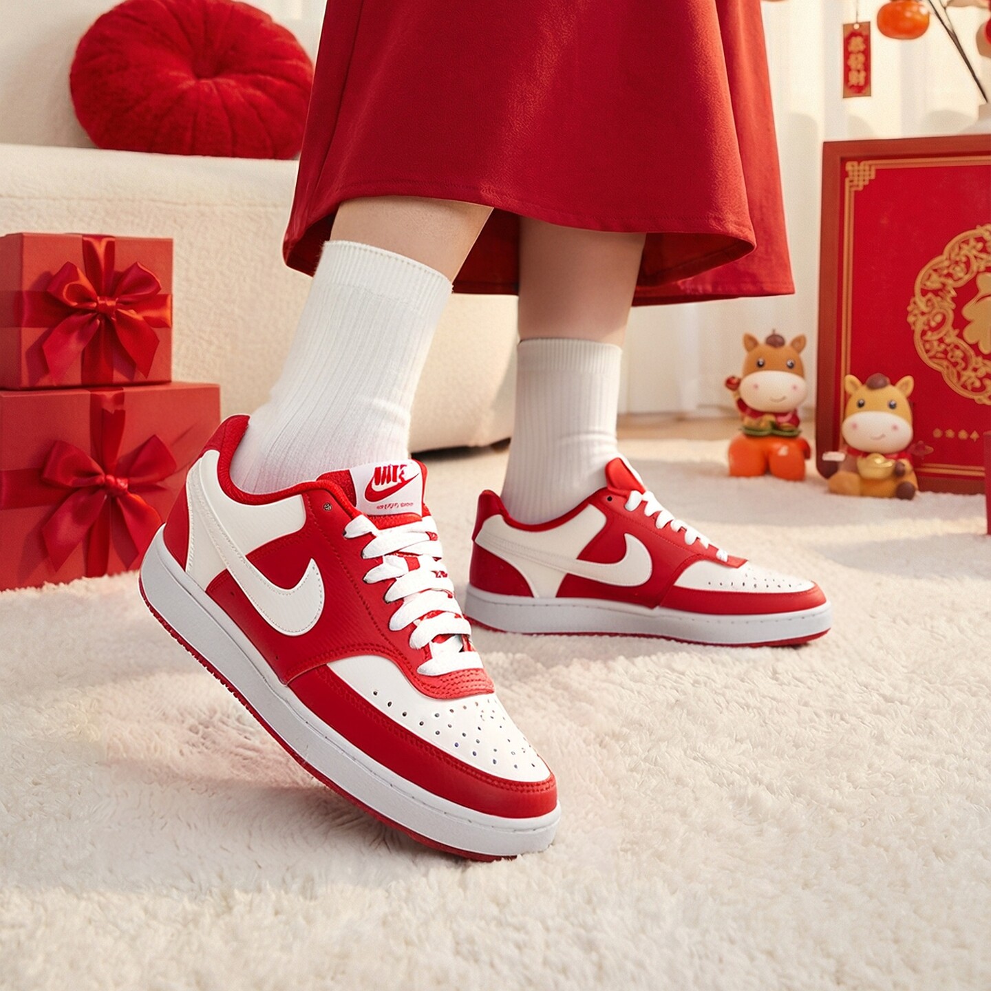 NIKE耐克板鞋男鞋女鞋2025冬季新款本命年红色court运动鞋休闲鞋