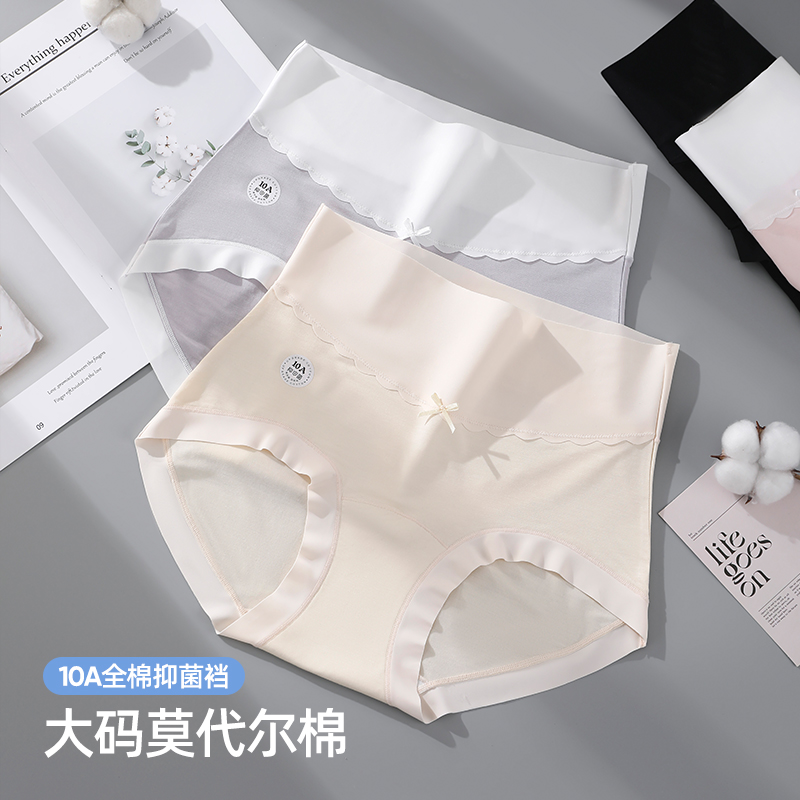 60支莫代尔胖mm大码内裤女200斤高腰收腹纯棉裆10a抗菌无痕三角裤