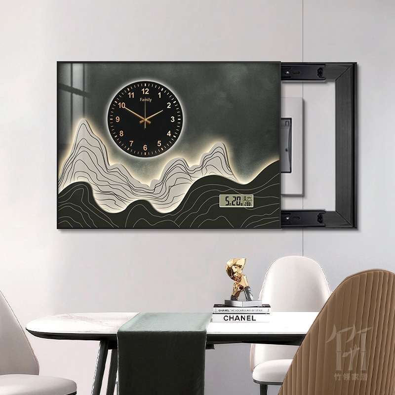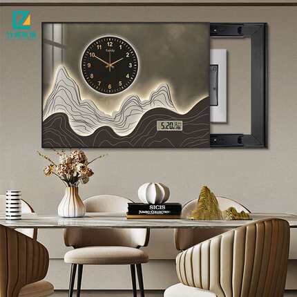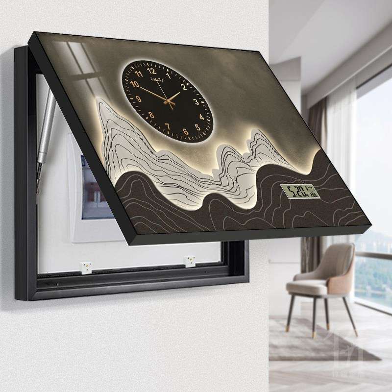 电表箱装饰画带钟表现代简约电子静音万年历配电箱遮挡家用总开关