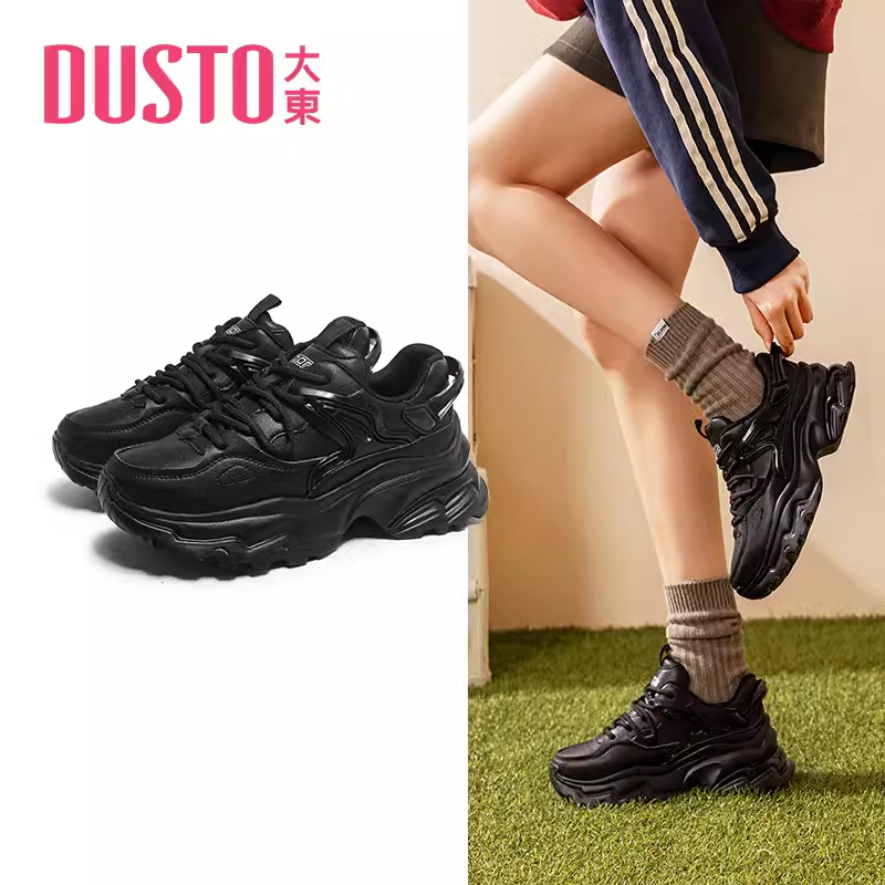 大东老爹鞋女23秋季新款系带圆头厚底拼接休闲运动鞋女鞋23Q1913
