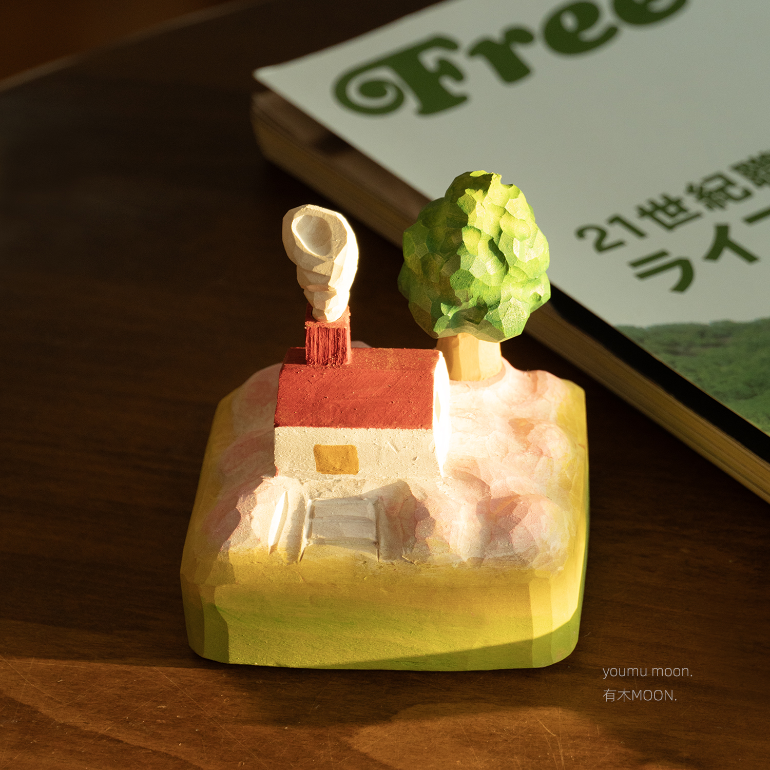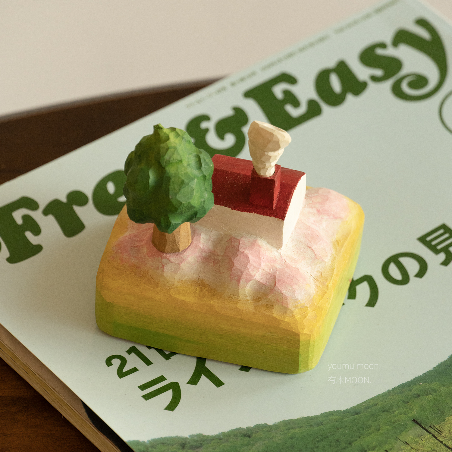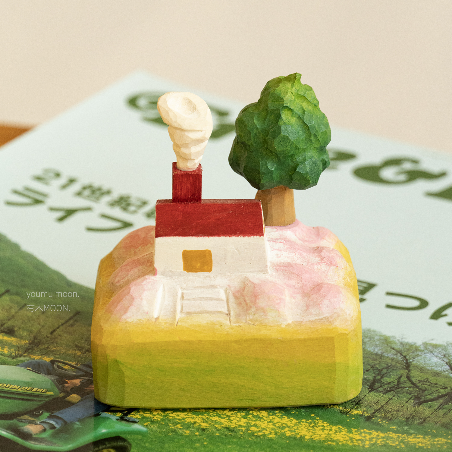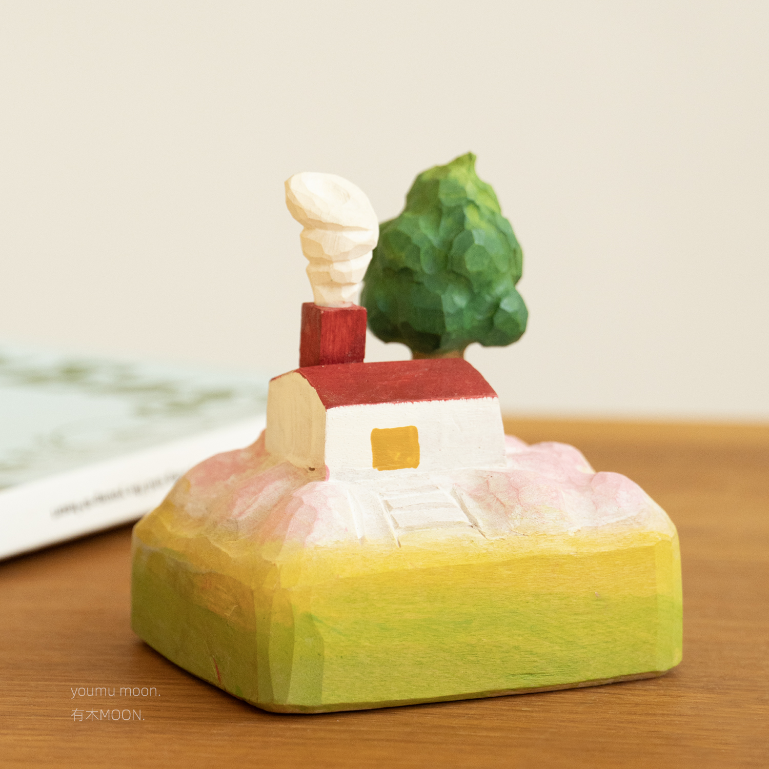 桃花坞 树荫下炊烟袅袅 木雕手作治愈高级桌面摆件礼物礼品纯手工