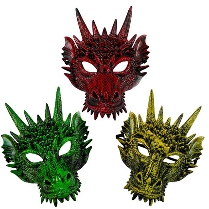 万圣节面具儿童成人恐龙面罩假面化妆舞会表演神龙道具玩具面具