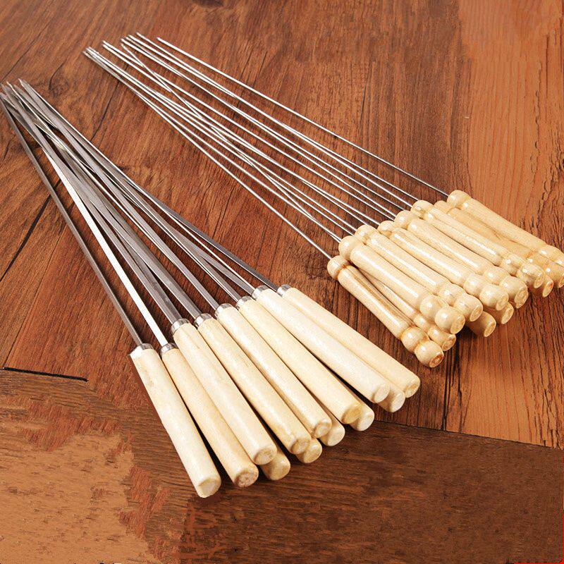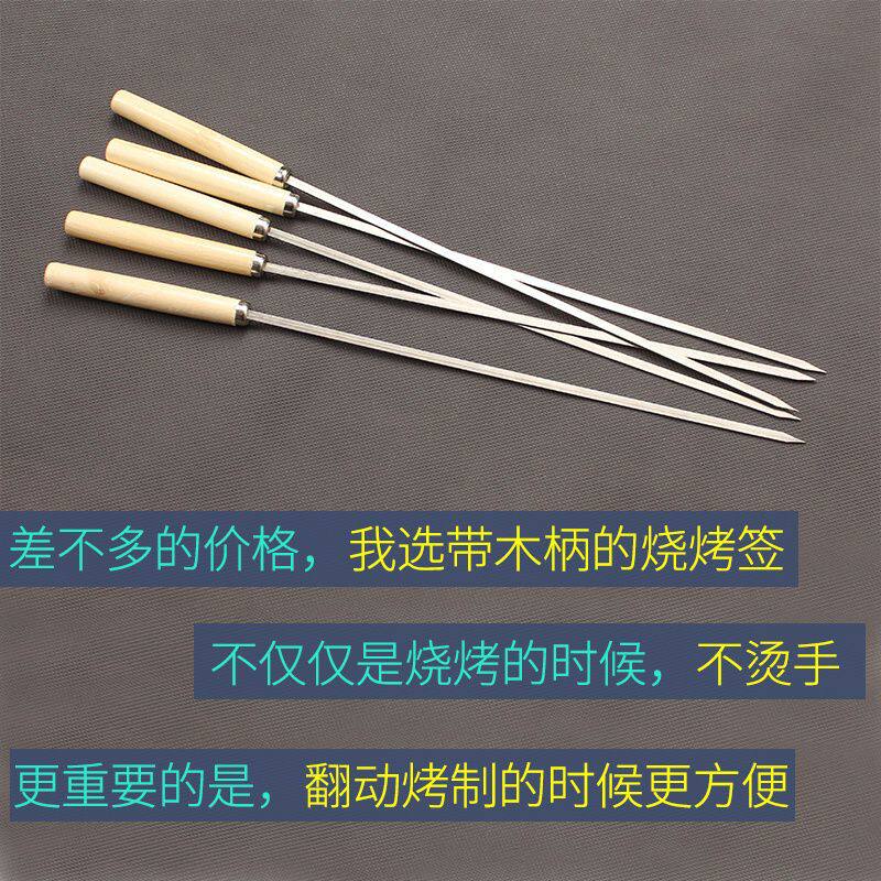 烧烤店摆摊用品不锈钢木柄烧烤签子烤串羊肉串圆扁签户外用具烧烤