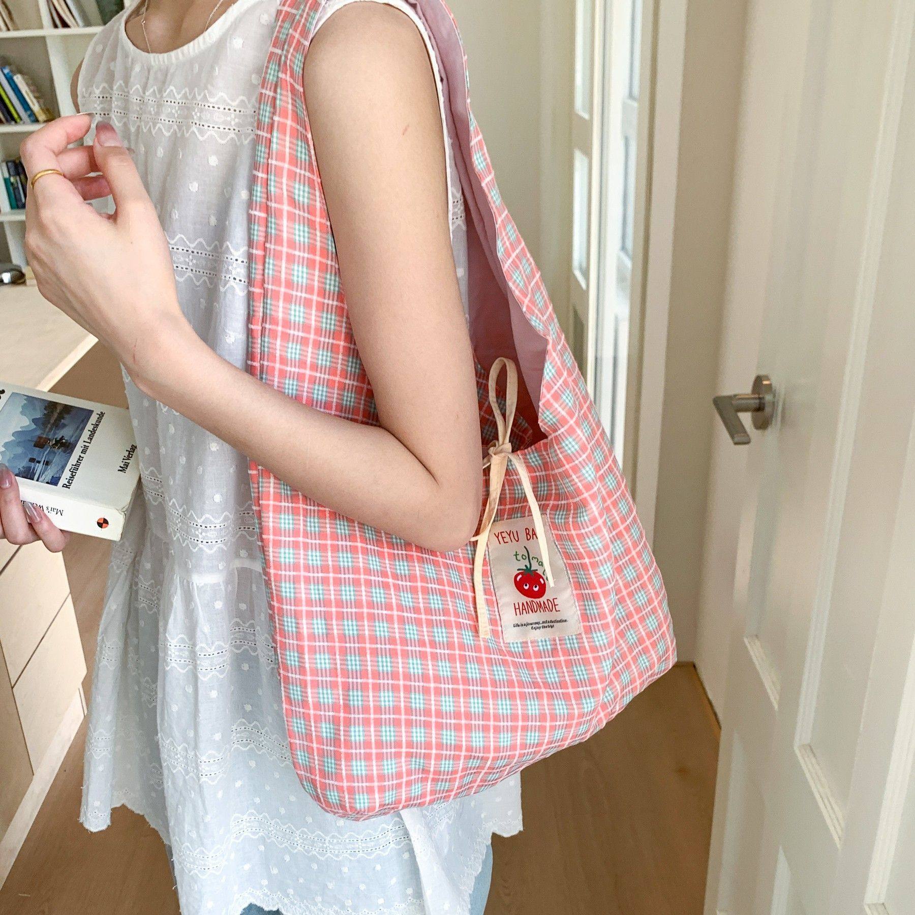 日系双面帆布包女新款手提单肩帆布袋大容量学生上课通勤托特包包
