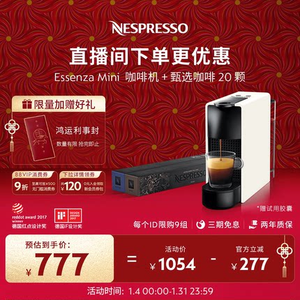 Nespresso奈斯派索全自动胶囊咖啡机组合 Essenza mini含20颗胶囊