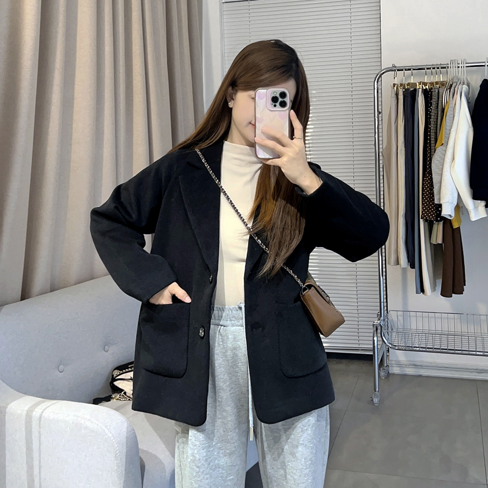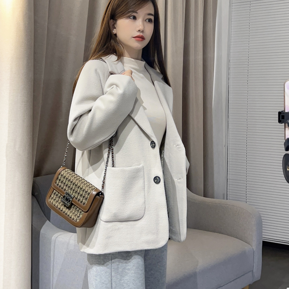 150小个子百搭休闲西装领毛呢外套短款长袖加厚呢子大衣女装冬