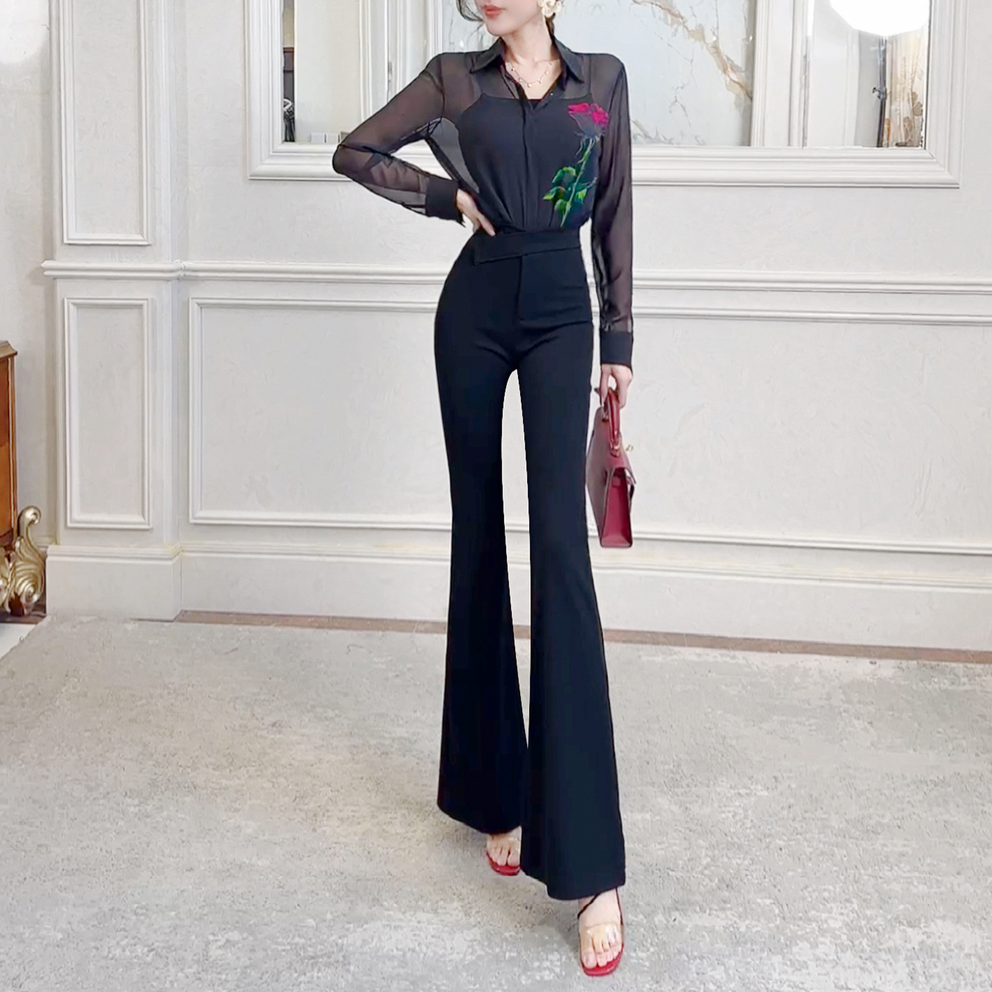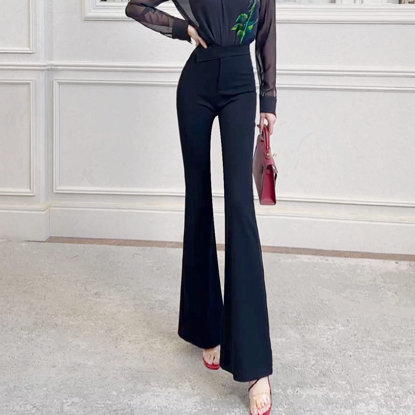 飞姐定制魔术贴弹力通勤喇叭裤休闲裤黑色女秋新款显瘦OL长裤