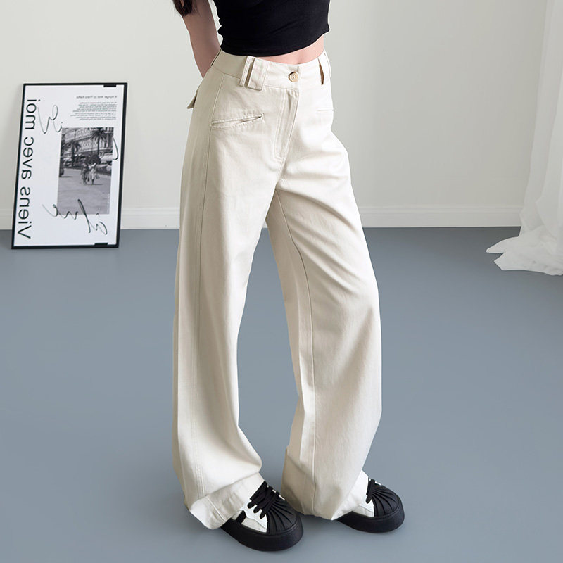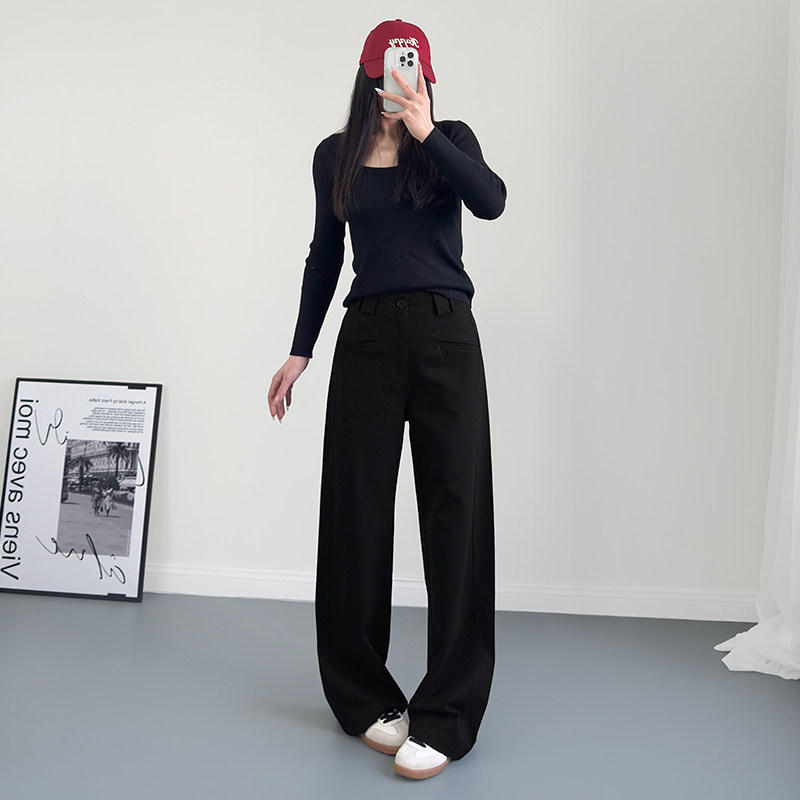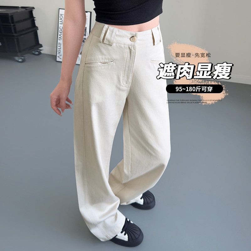 大码宽松休闲直筒裤女2025春季胖mm显瘦西装裤加长直筒设计感长裤