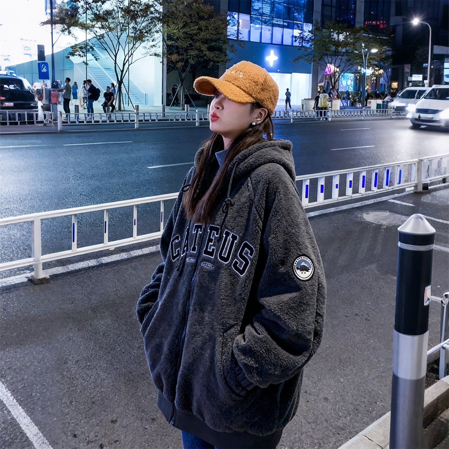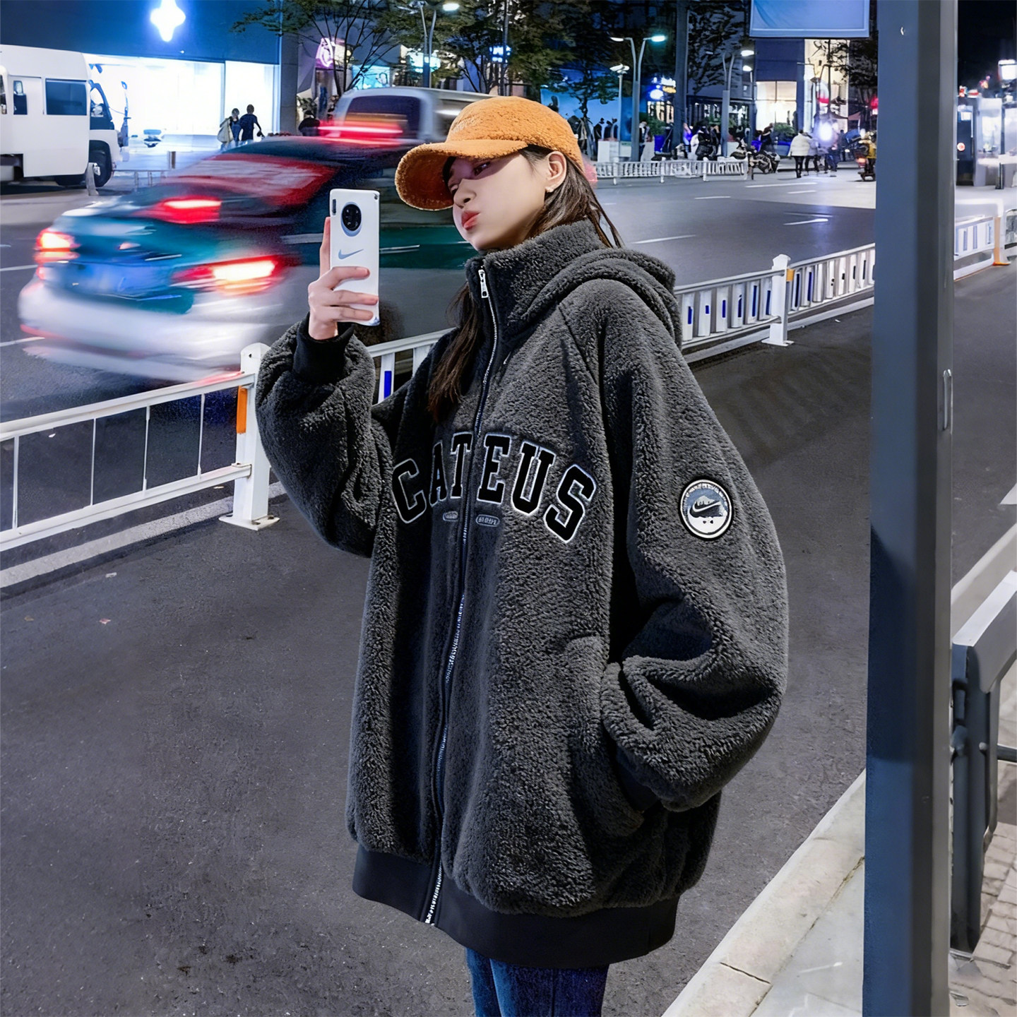 特大码女装胖mm双面穿羊羔绒棉服女宽松显瘦连帽加厚保暖棉衣外套