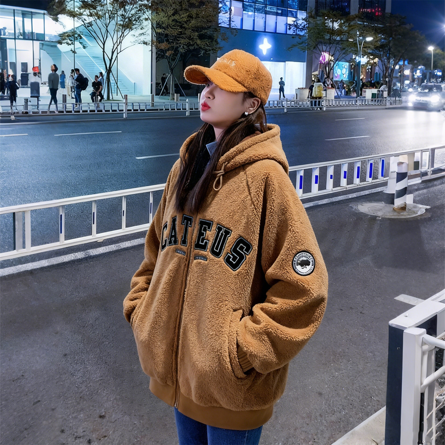 特大码女装双面穿羊羔绒棉服
