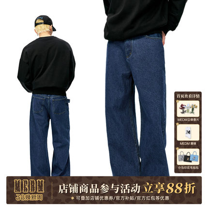 MEDM25SS腰牌设计水洗阔腿牛仔裤春秋简约美式复古宽松直筒长裤子
