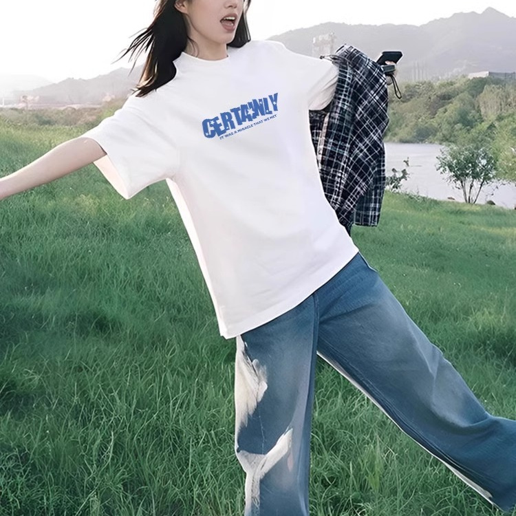 短袖t恤女2025新款爆款胖mm大码女装纯棉宽松慵懒风白色上衣女夏