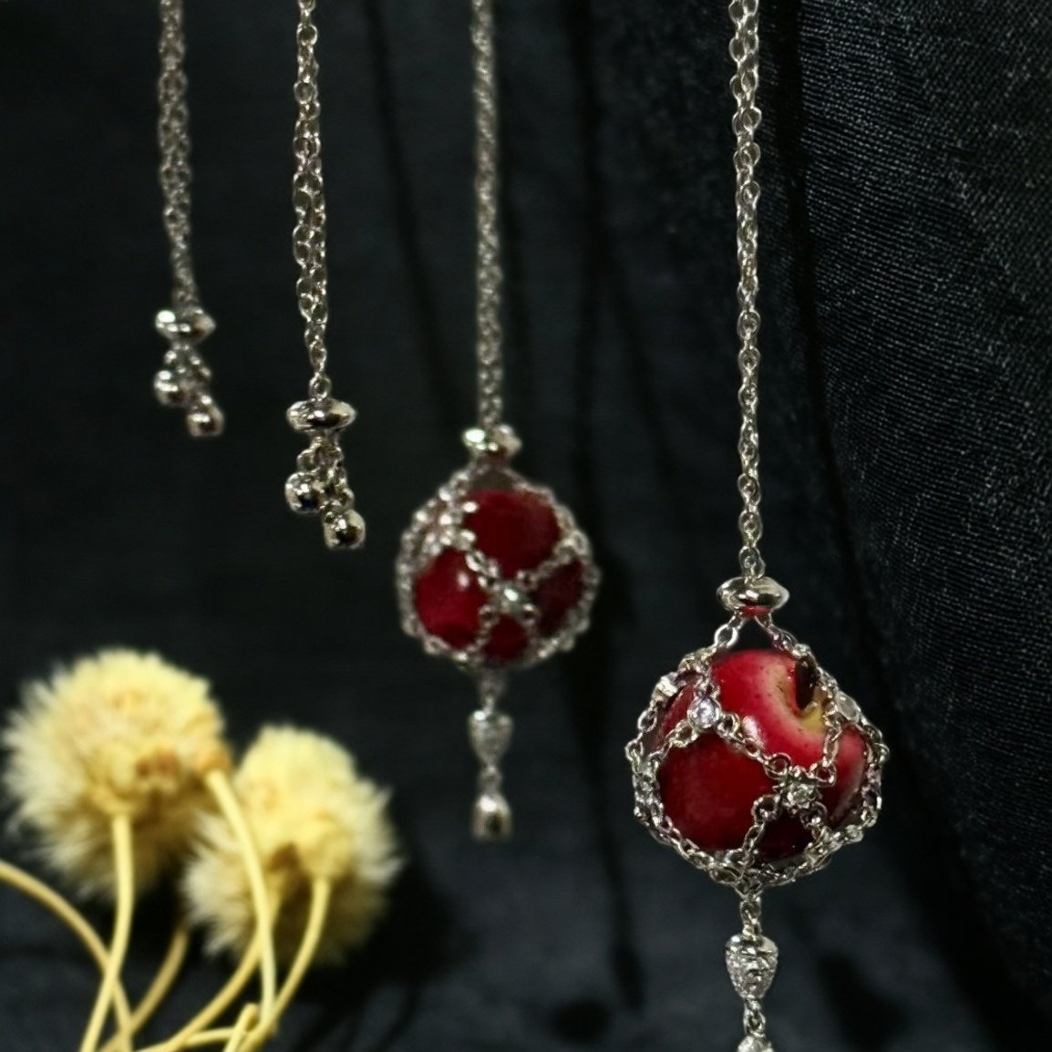 圣诞节红苹果网兜项链女士小众个性设计感甜美百搭毛衣链闺蜜礼物