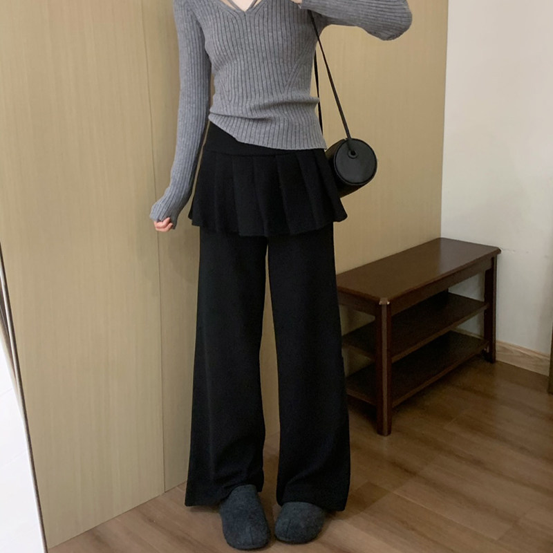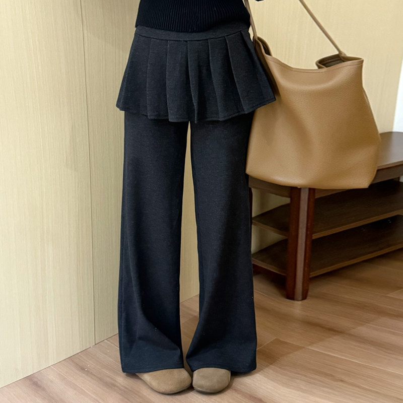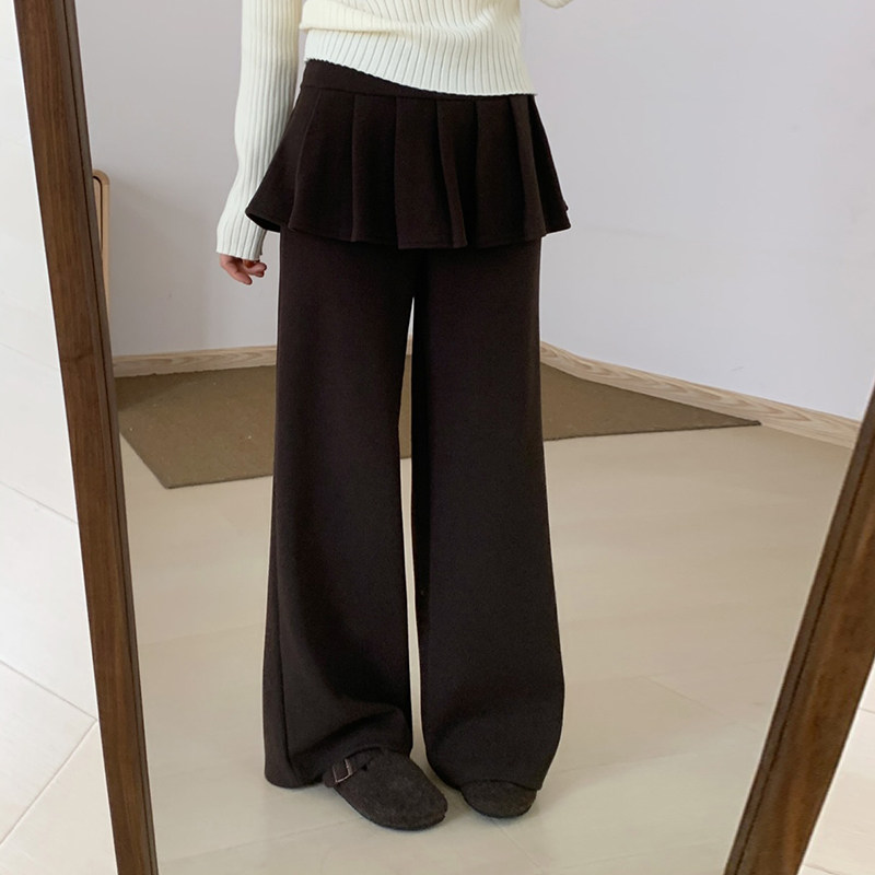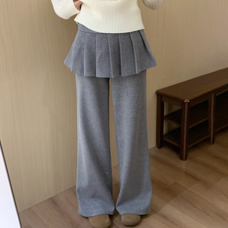 话里设计感叠穿百褶裙裤2025冬季新款韩版纯色简约风直筒长裤女