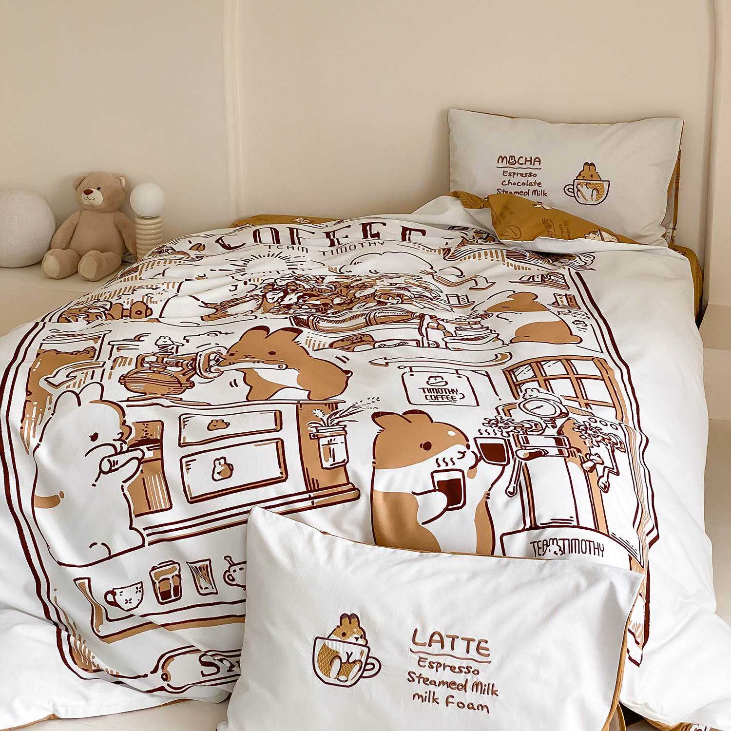 富山商店x提摩西小队正版可爱磨毛纯棉床上四件套咖啡系列