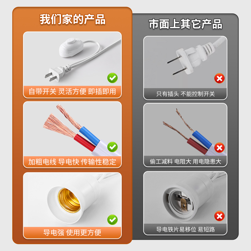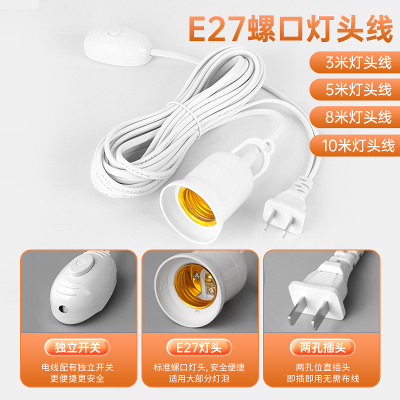 家用LED灯泡插电插座灯E27带插头超亮照明灯节能灯带线螺口灯座