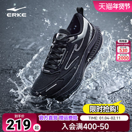 穿梭4鸿星尔克男鞋革面防泼水跑步鞋轻便防滑运动鞋减震透气跑鞋