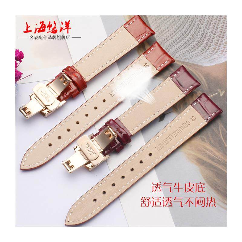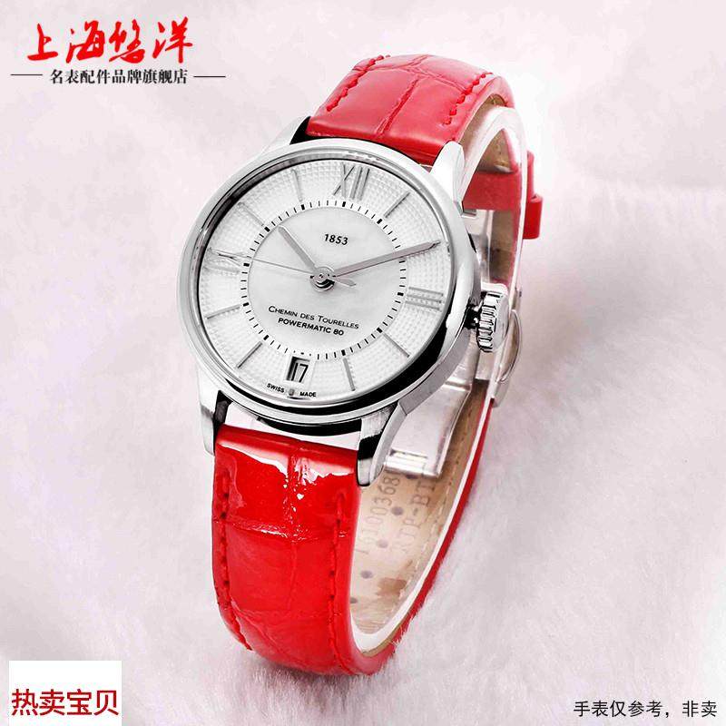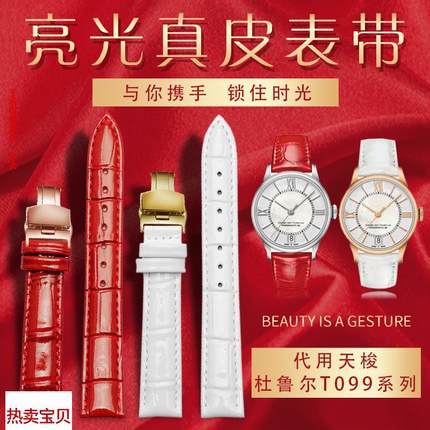 适用原装1853天梭T099手表带杜鲁尔系列T099207A女亮红色真皮表链