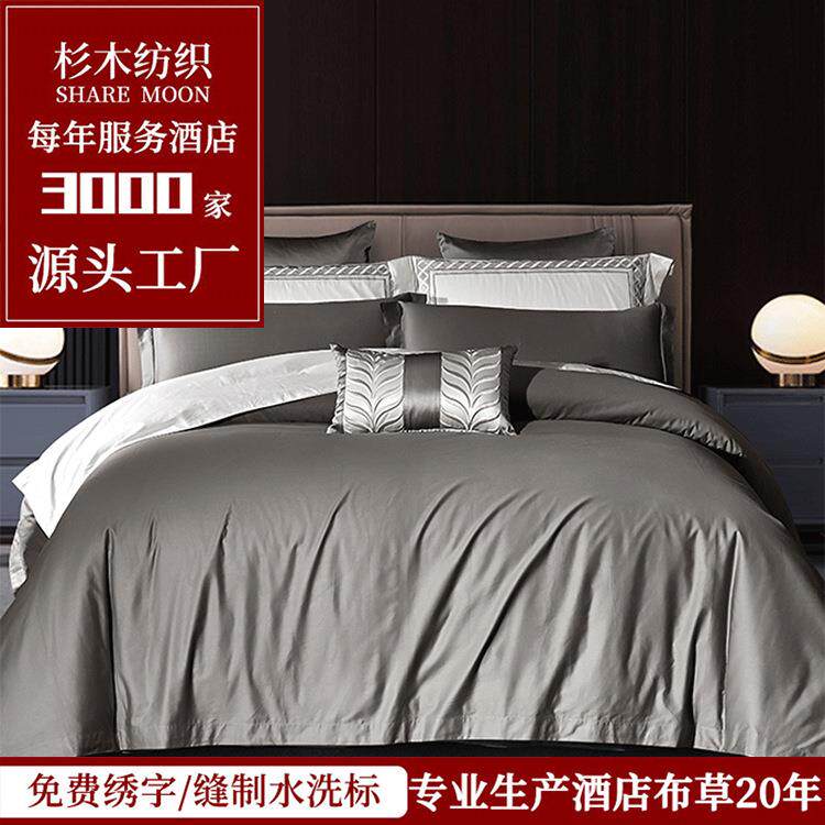 全棉酒店四件套60支贡缎长绒棉酒店布草纯色民宿客栈床单被罩
