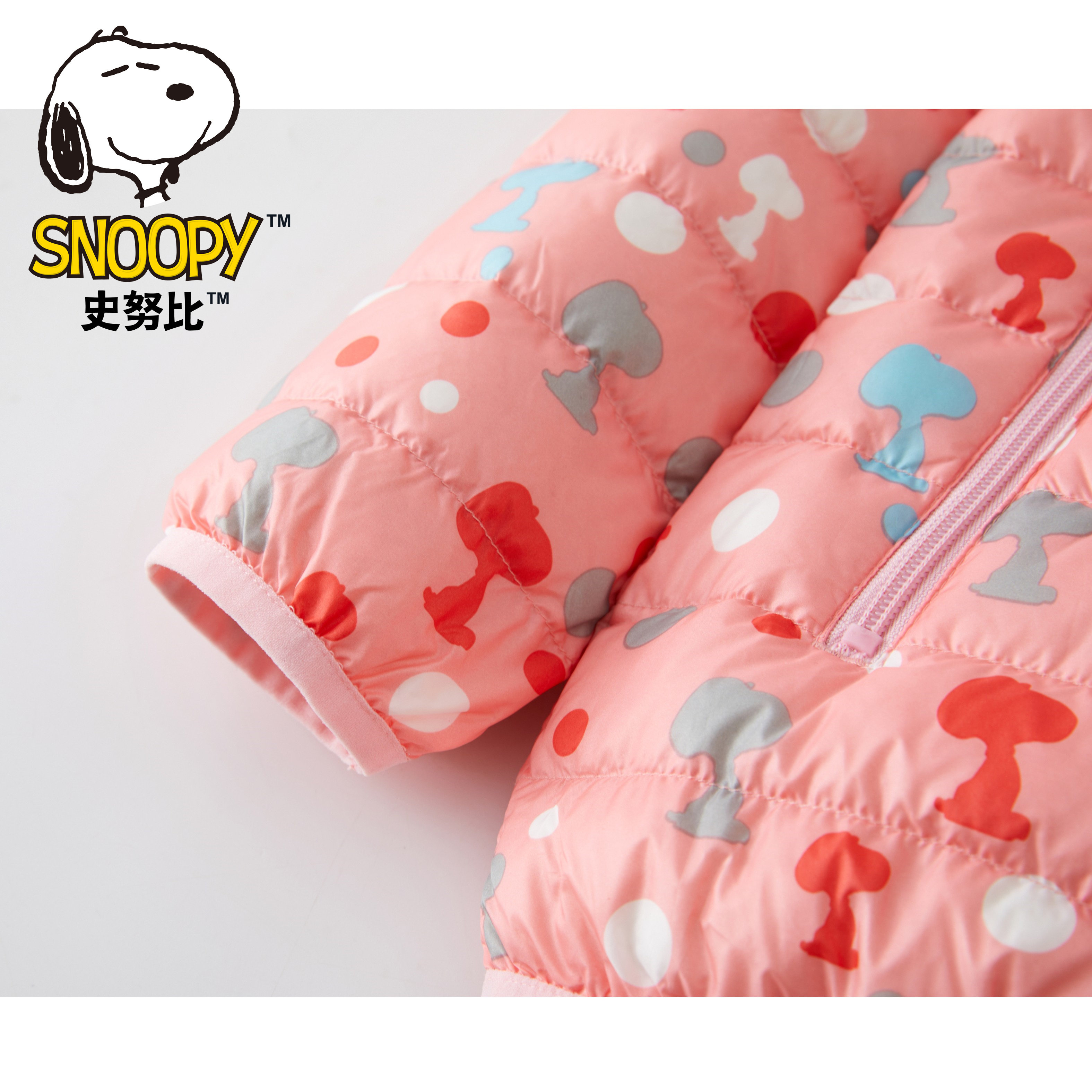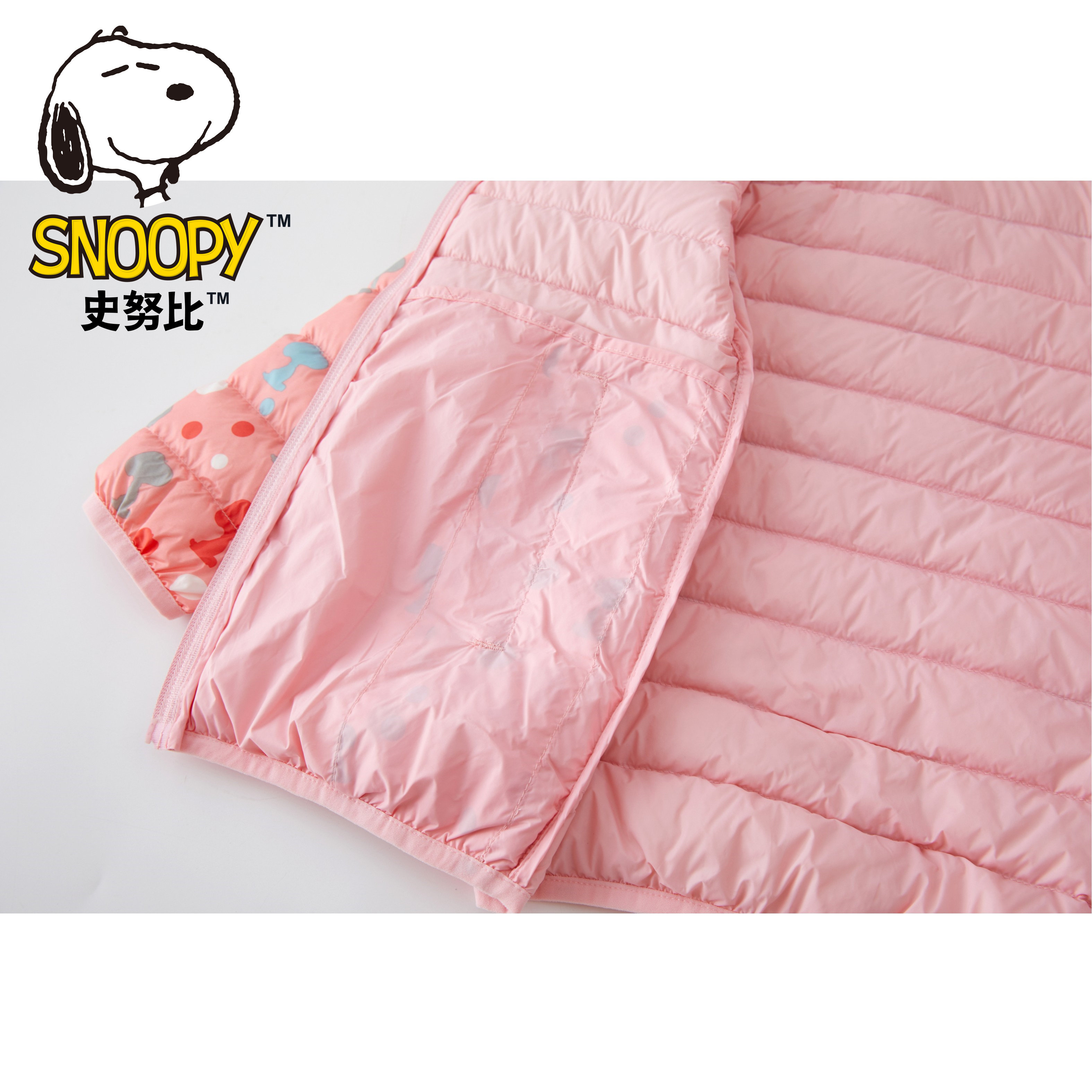 史努比童装短款轻薄款羽绒服印花