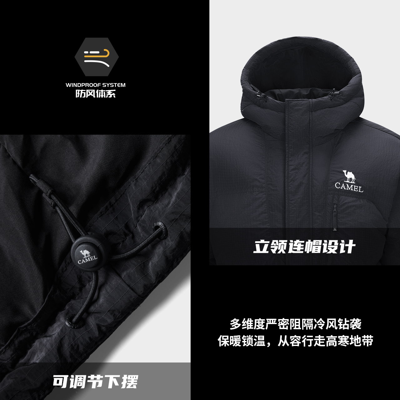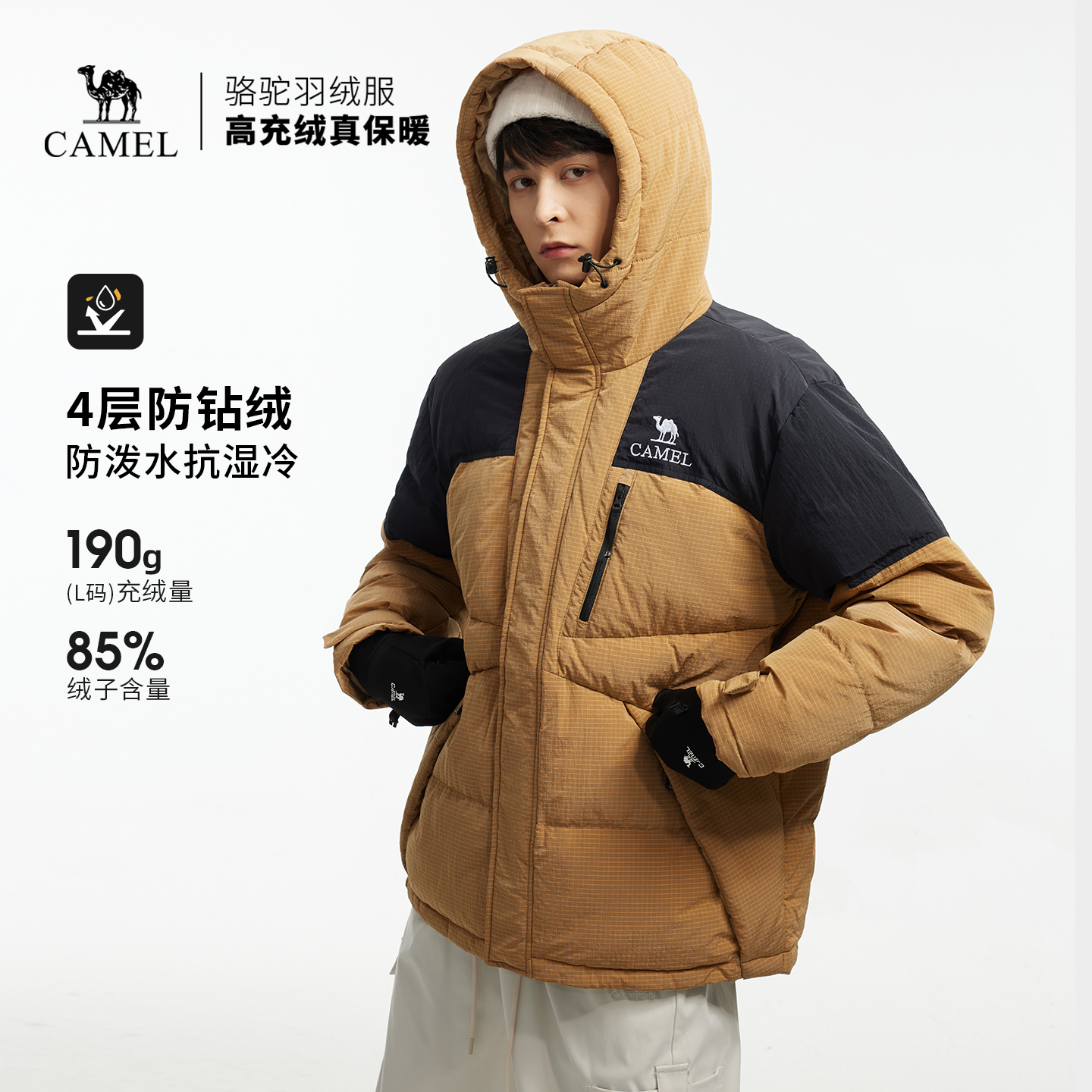 骆驼羽绒服女冬季户外2025新款防水短款面包服男女款