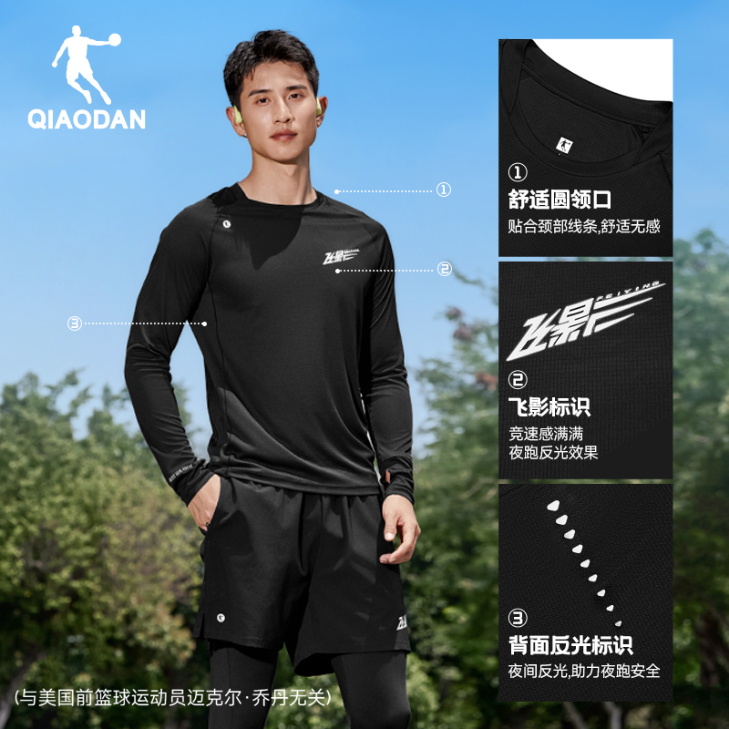 乔丹飞影紧身t恤男2025新款训练健身上衣长袖跑步运动速干衣男装
