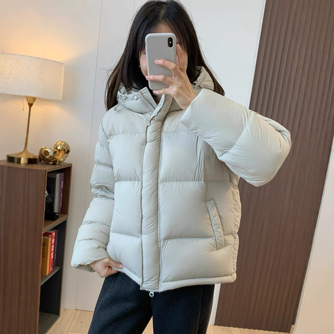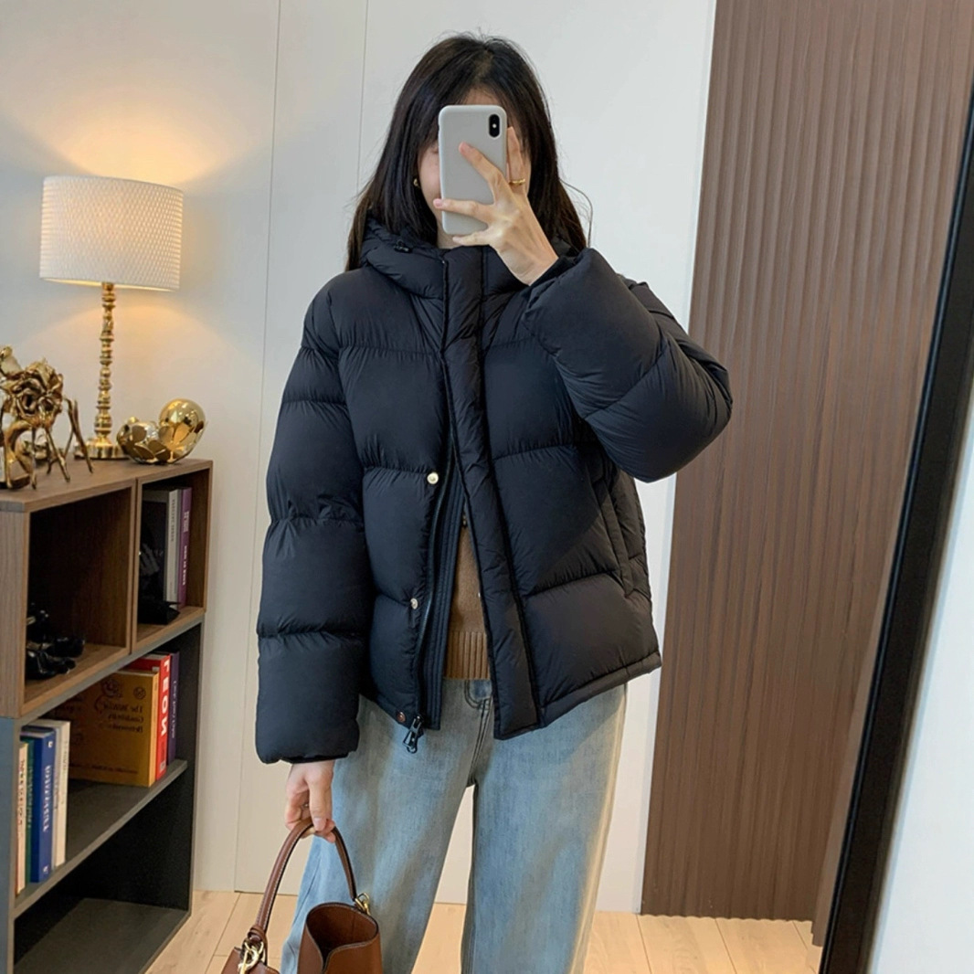羽绒服短款2025加厚御寒冬季新款连帽小个子白鸭绒面包外套女