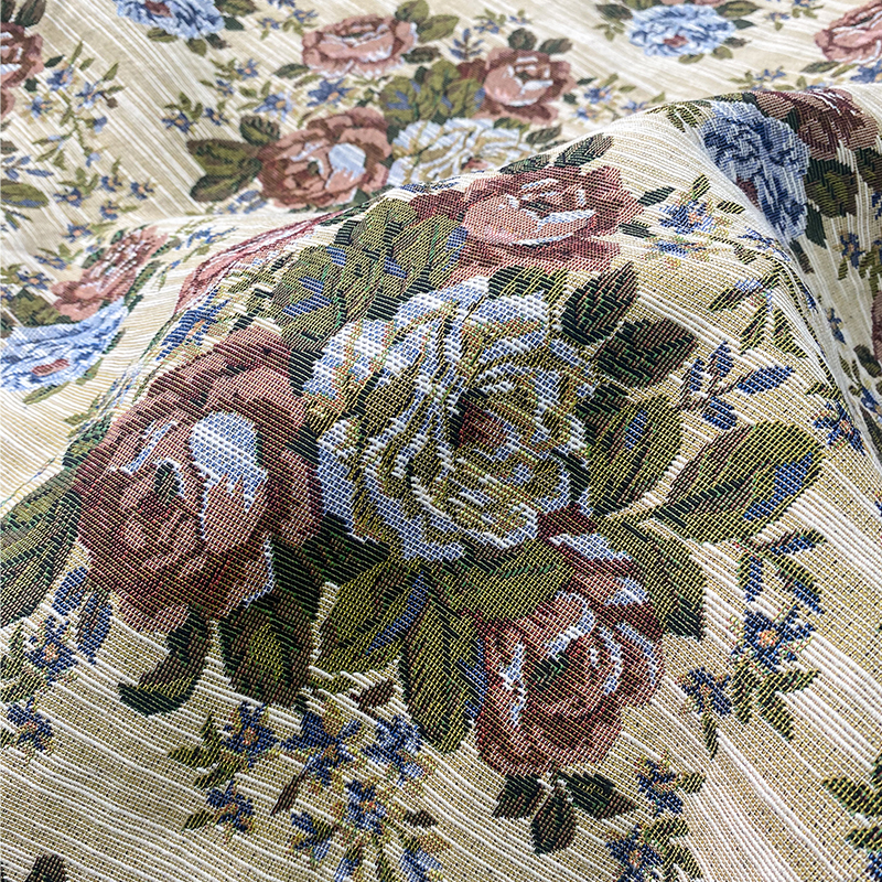 复古油画玫瑰花提花布料厚抱枕沙发套连衣裙外套服装设计师的面料
