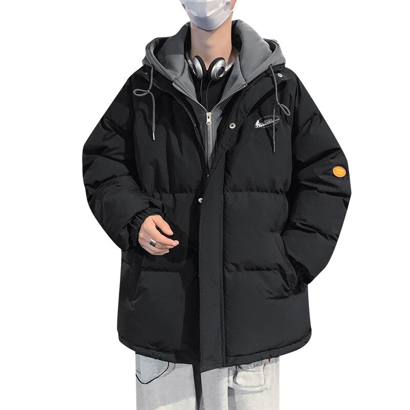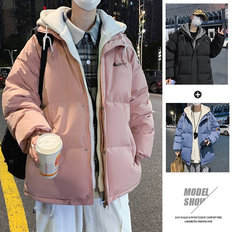 耐克顿假两件连帽棉衣男冬季加厚保暖宽松潮流棉服外套青少年百搭