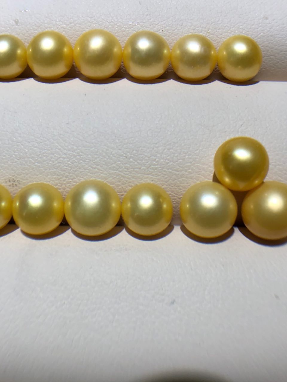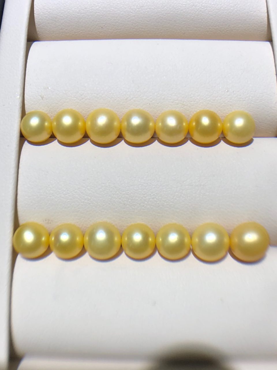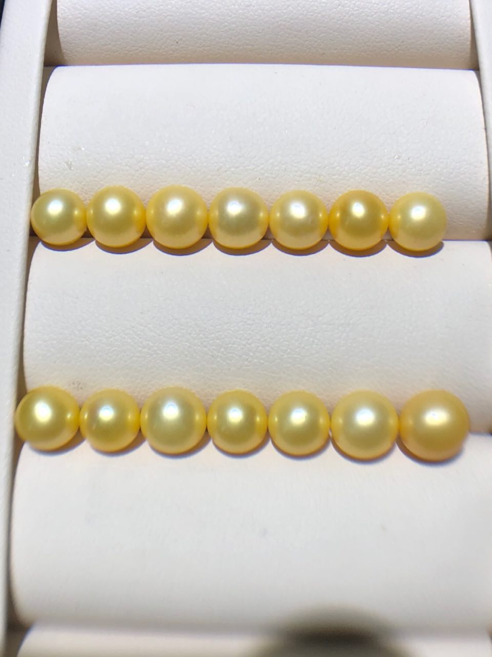 包邮天然淡水珍珠无核散颗粒优化浓金色6-7-8mm圆形基本无暇半孔