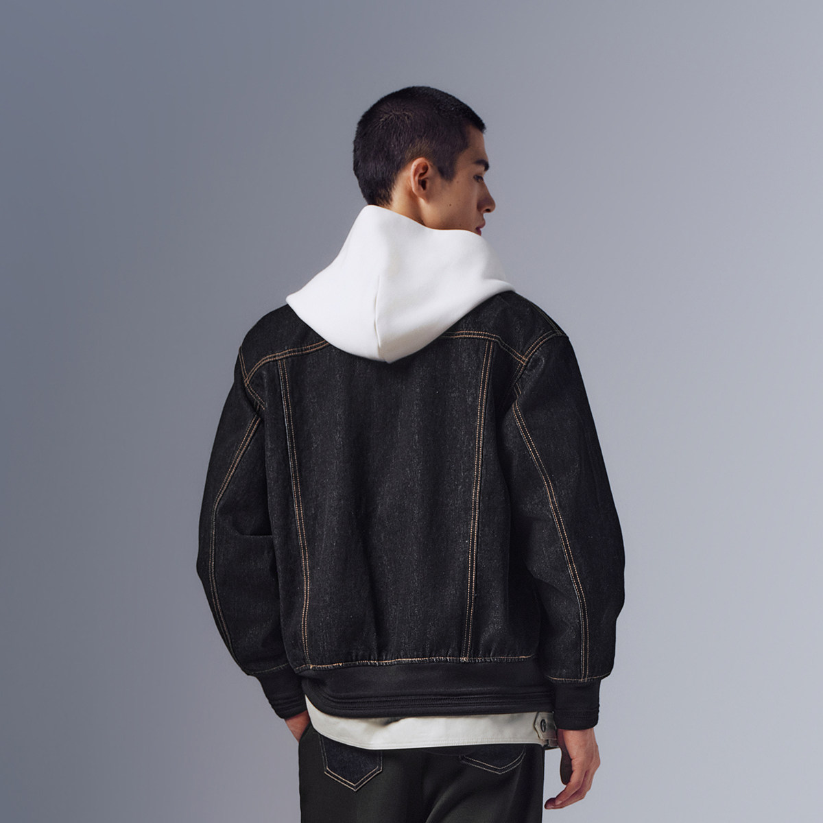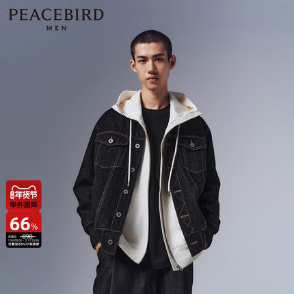 太平鸟男装 休闲夹克男士时尚舒适经典明线牛仔外套秋潮流夹克男