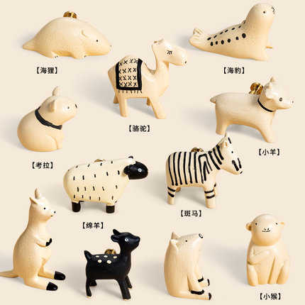 儿童卡通动物原木风高门衣柜拉手大全柜门可爱柜子抽屉单孔门把手