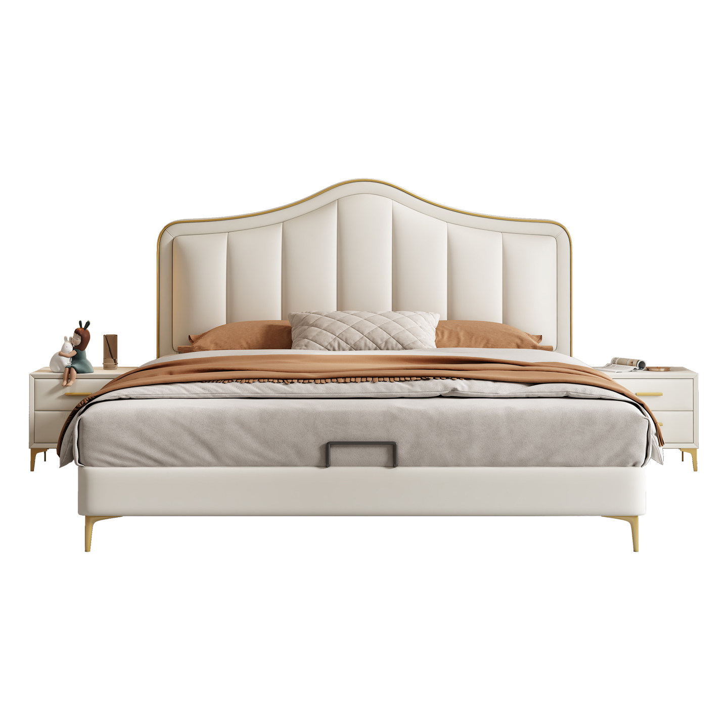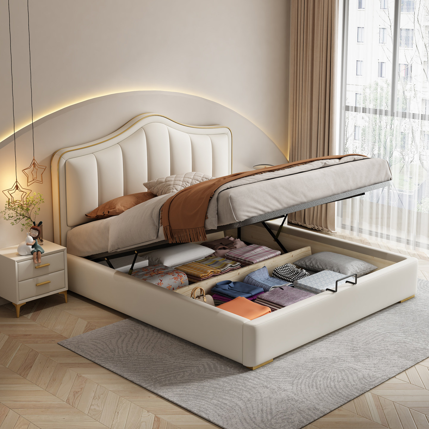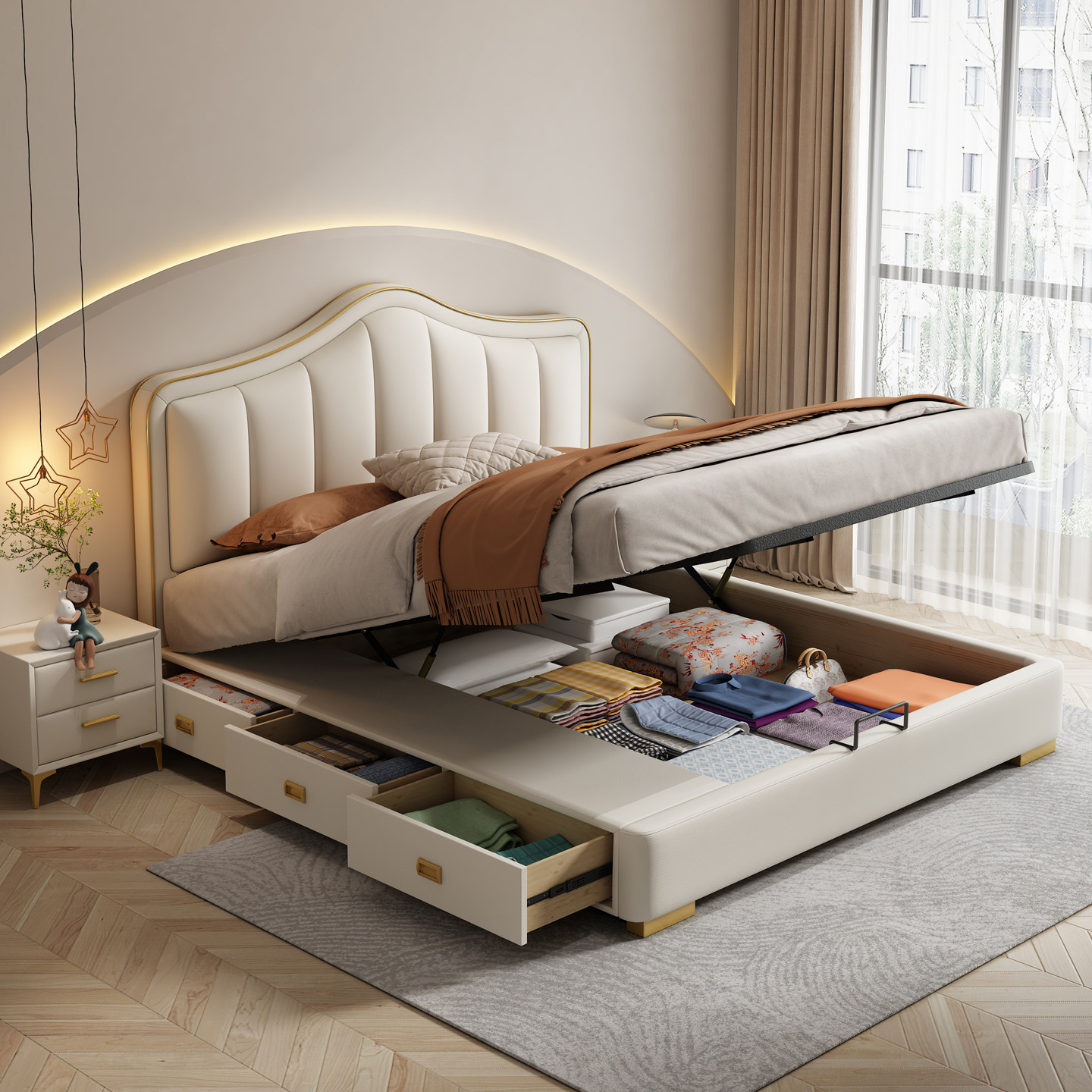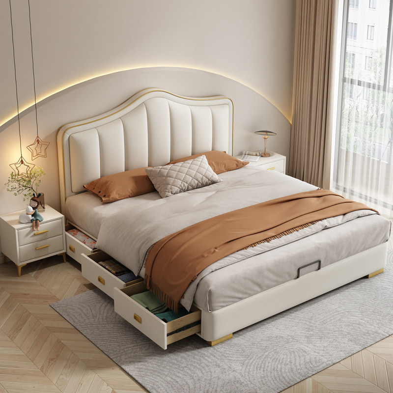 金可儿真皮床主卧1米8储物双人收纳皮床简约现代1米5轻奢奶油风实