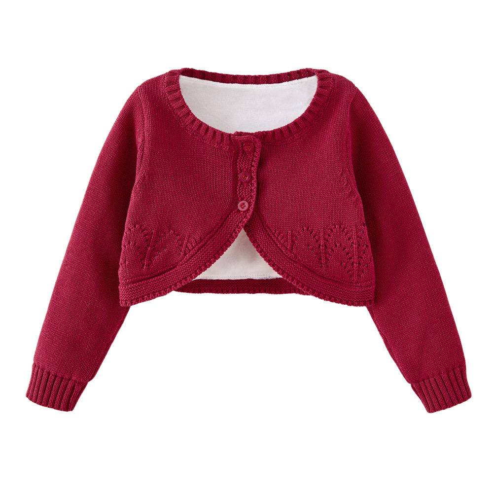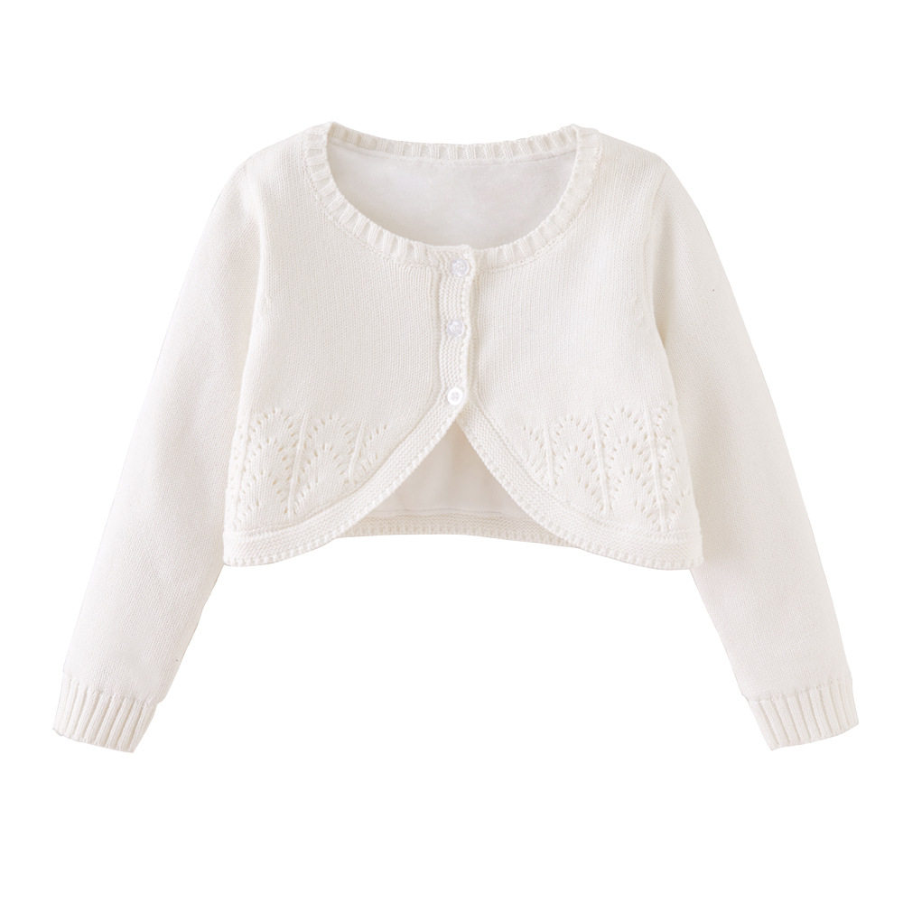 女童外搭开衫秋冬款宝宝婴儿白色纯棉短款加绒毛衣针织小披肩外套