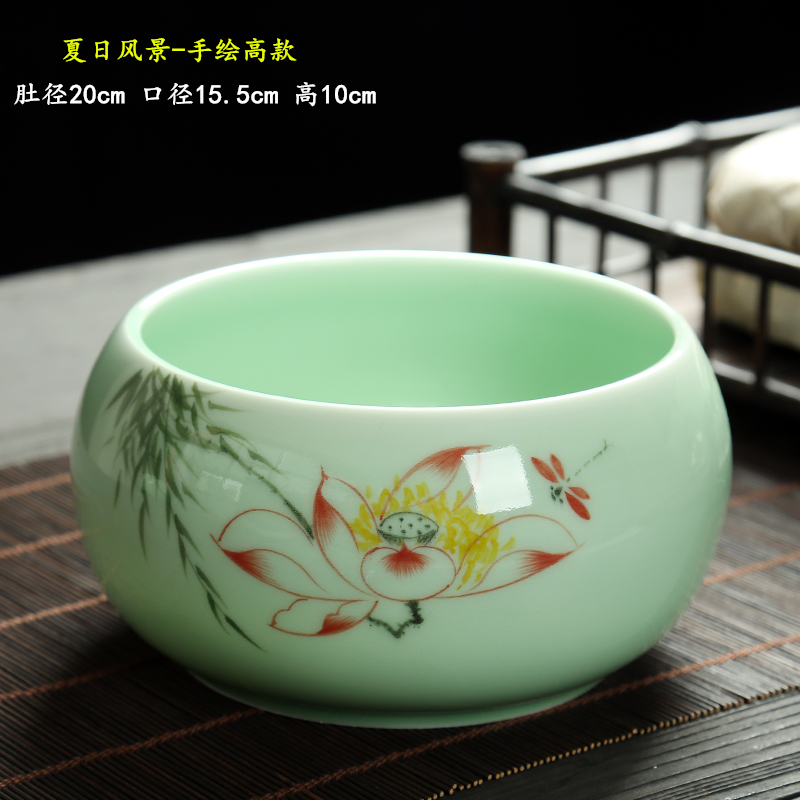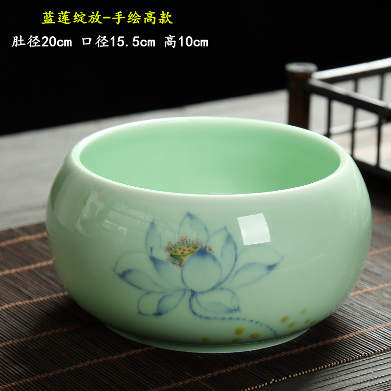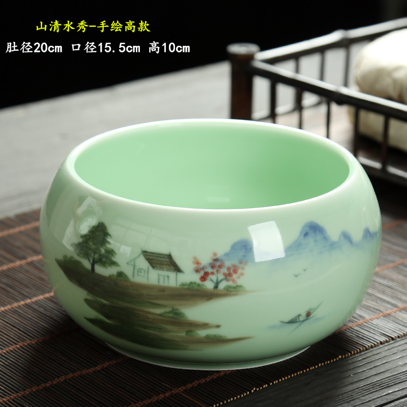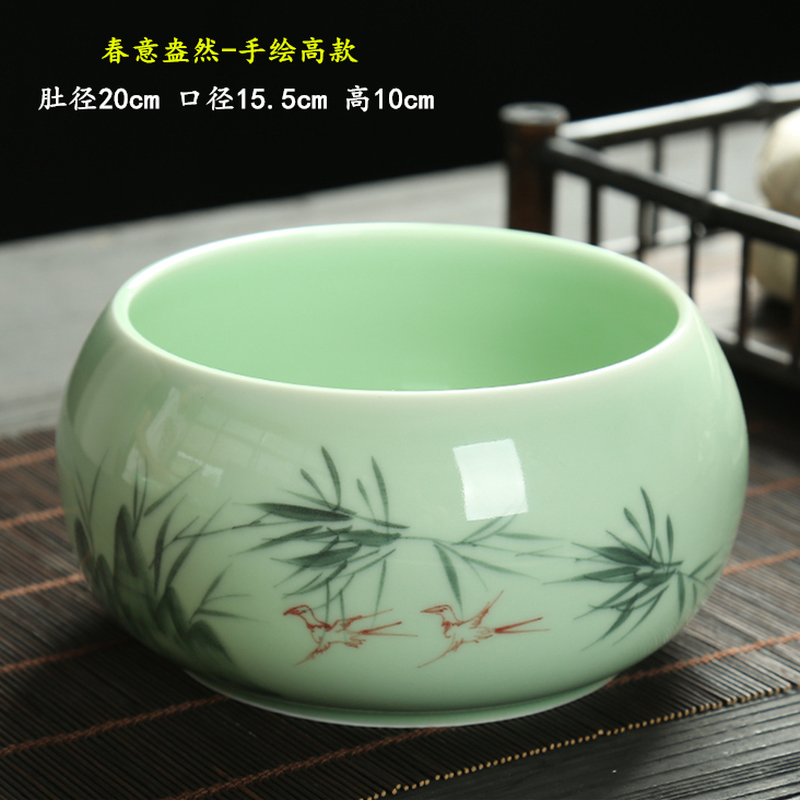青瓷大号茶洗陶瓷家用茶渣缸办公室洗茶杯盆器皿茶具配件水盂笔洗