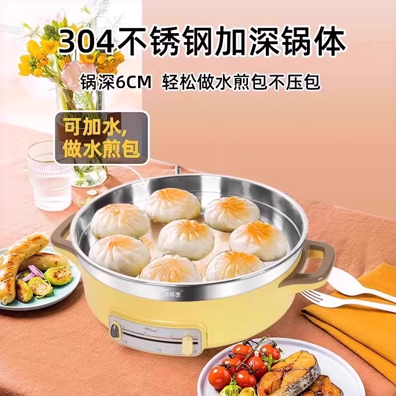 锈钢电煎锅家用加深加大电饼锅无涂层电热火锅佳佳恋电饼铛304不