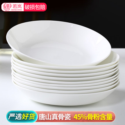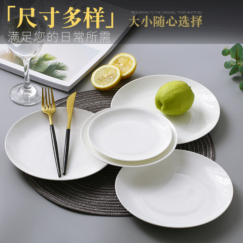 纯白骨瓷盘子简约家用菜盘圆形盘子平盘方盘6个套装唐山陶瓷餐具