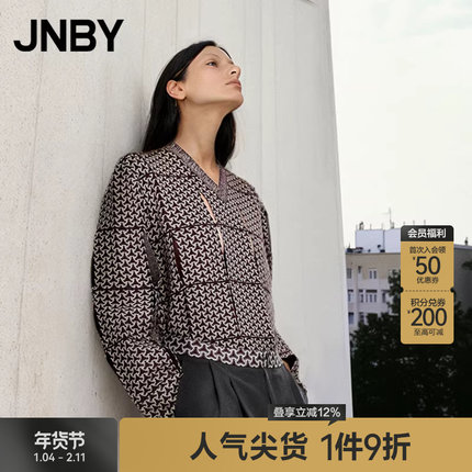 JNBY/江南布衣折扣秋冬针织衫宽松镂空V领套头长袖短款毛衫女