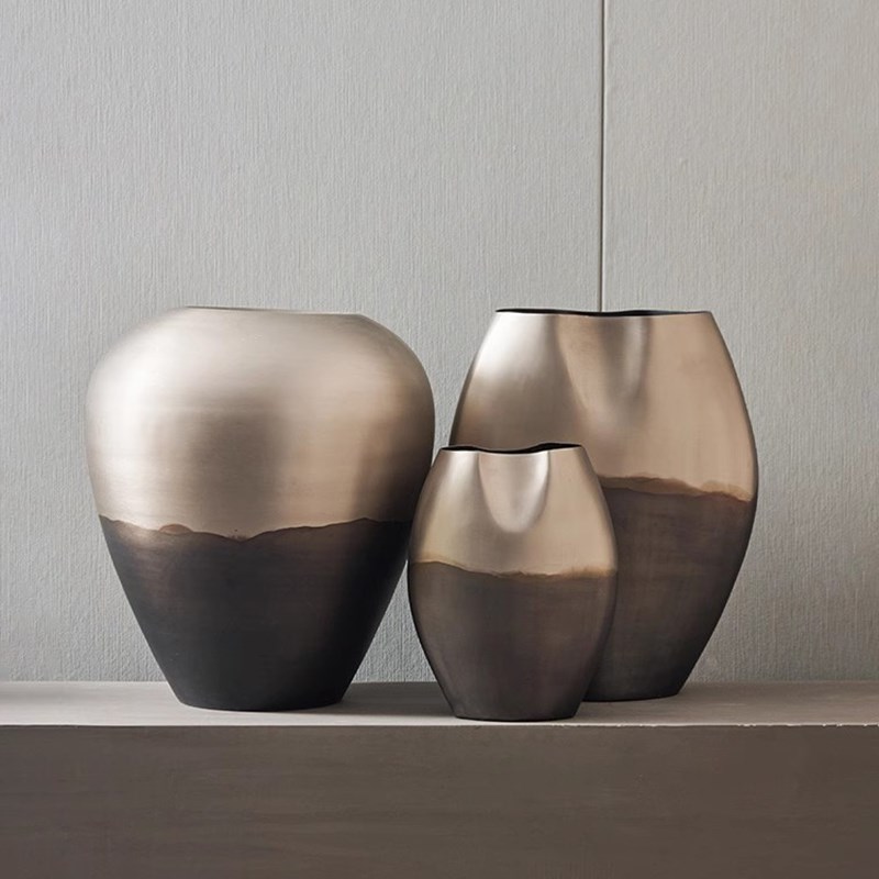 轻奢金属花瓶 欧美法式软装饰品 别E墅客厅花器现代极简约花插摆