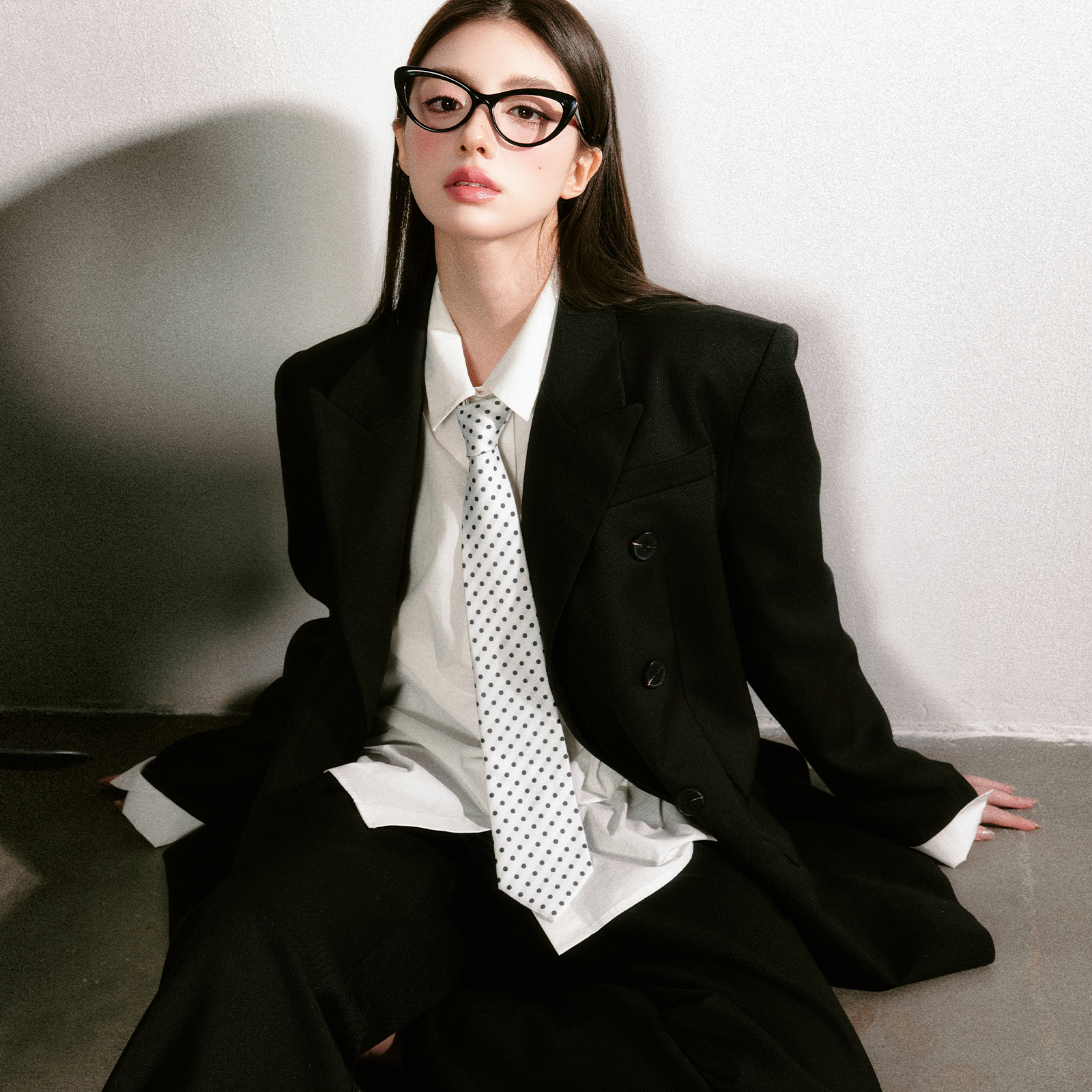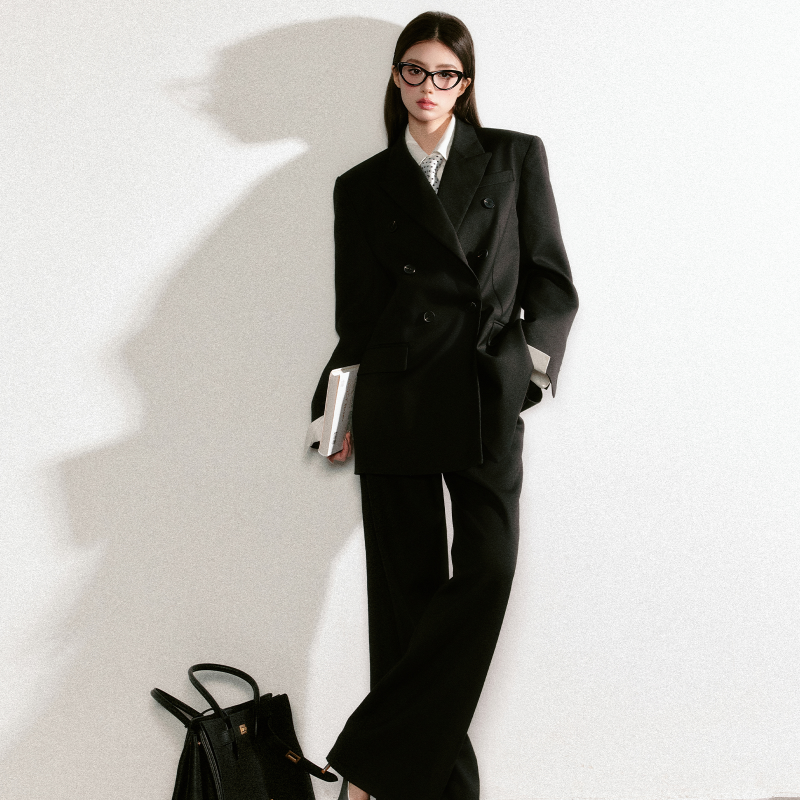 aoki doki 圣*罗兰同款 黑色西装外套女春秋高级感西服长裤套装