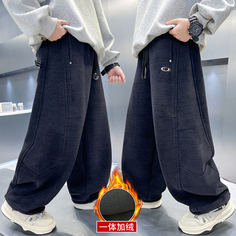 儿童装男童加绒裤子2025新款秋冬款男孩冬季加厚中大童运动卫裤潮