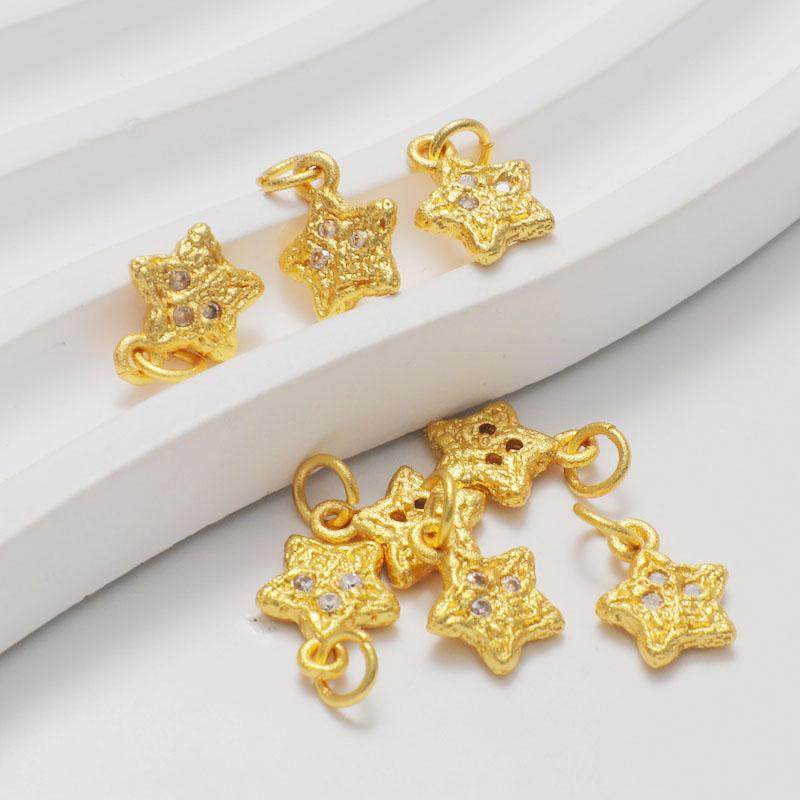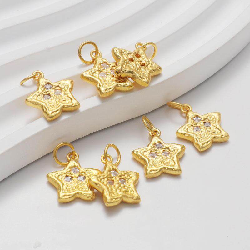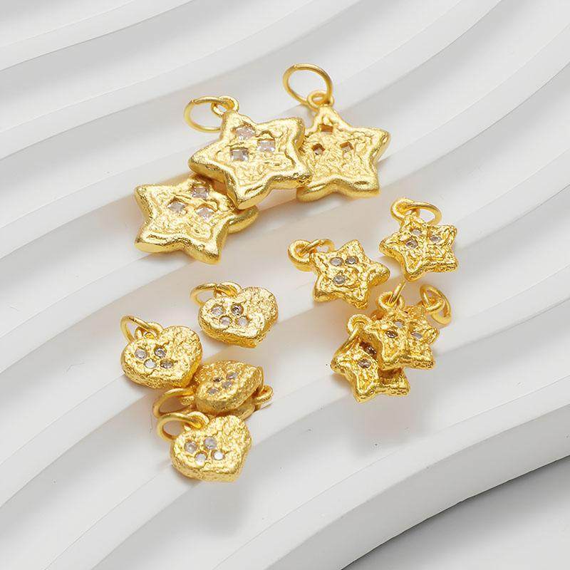 哑金包金保色镶嵌锆石五角星爱心镀金吊坠diy手链项链饰品坠子