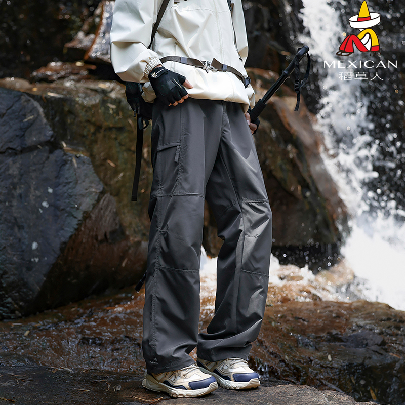 稻草人户外三防软壳冲锋裤男2025新款机能工装裤宽松直筒运动裤子