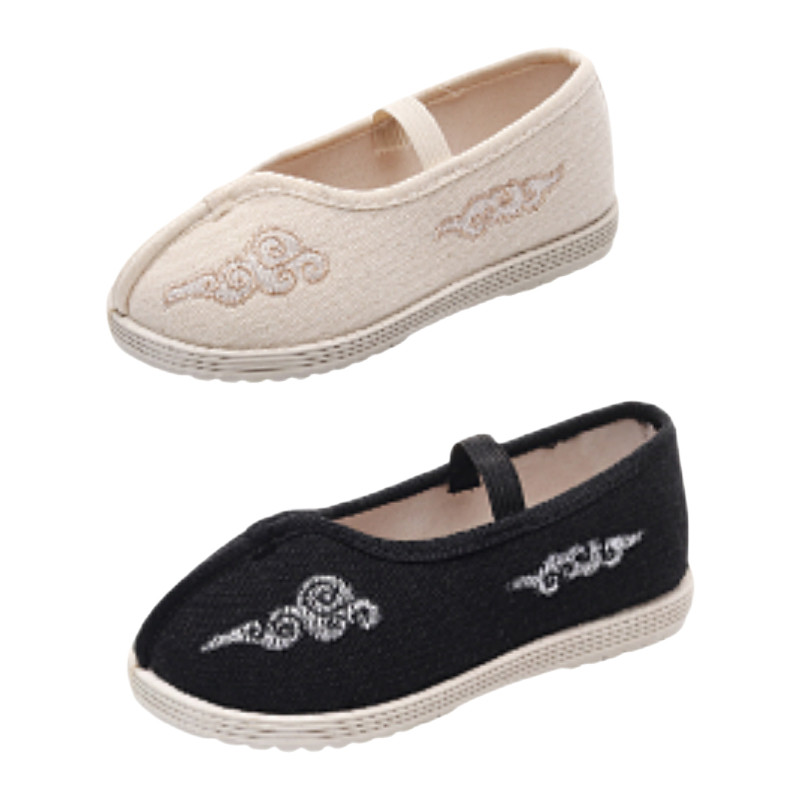 儿童汉服鞋古风女童绣花鞋中国风男童古装演出鞋老北京布鞋软底黑