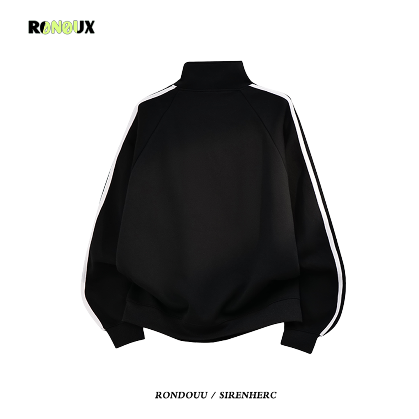 美式复古三杠条纹半拉链加绒卫衣男女秋冬加厚宽松运动学生外套潮