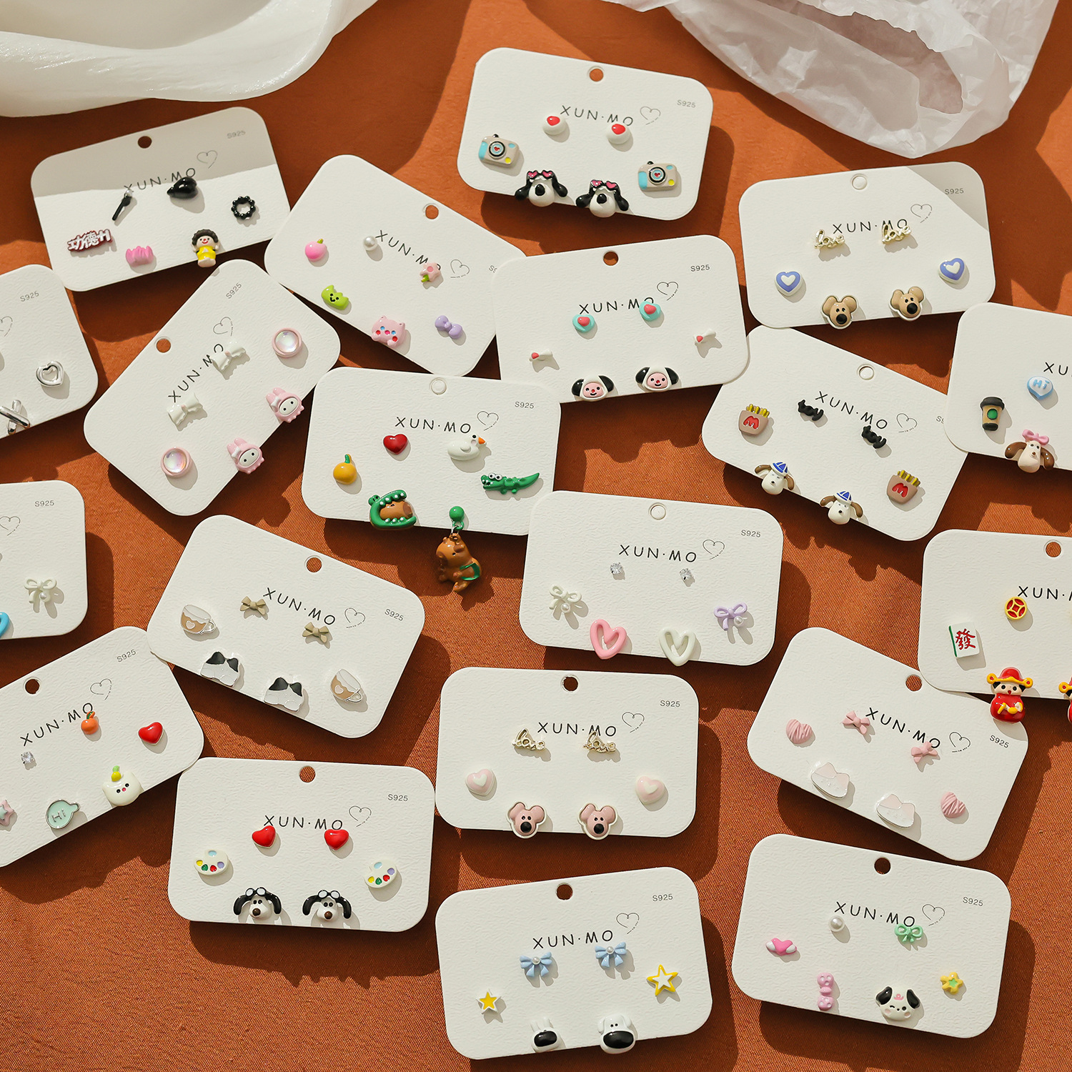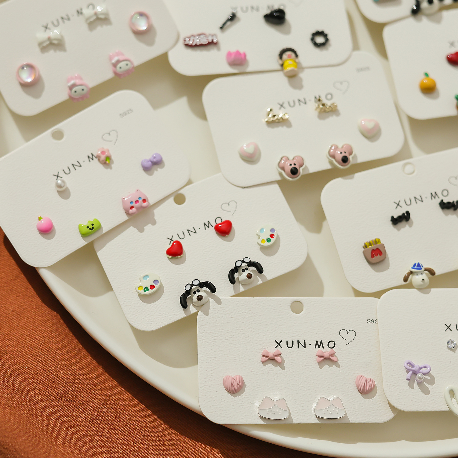 小清新卡通可爱银针耳钉女新款个性动物耳环小巧童趣耳饰组合耳饰