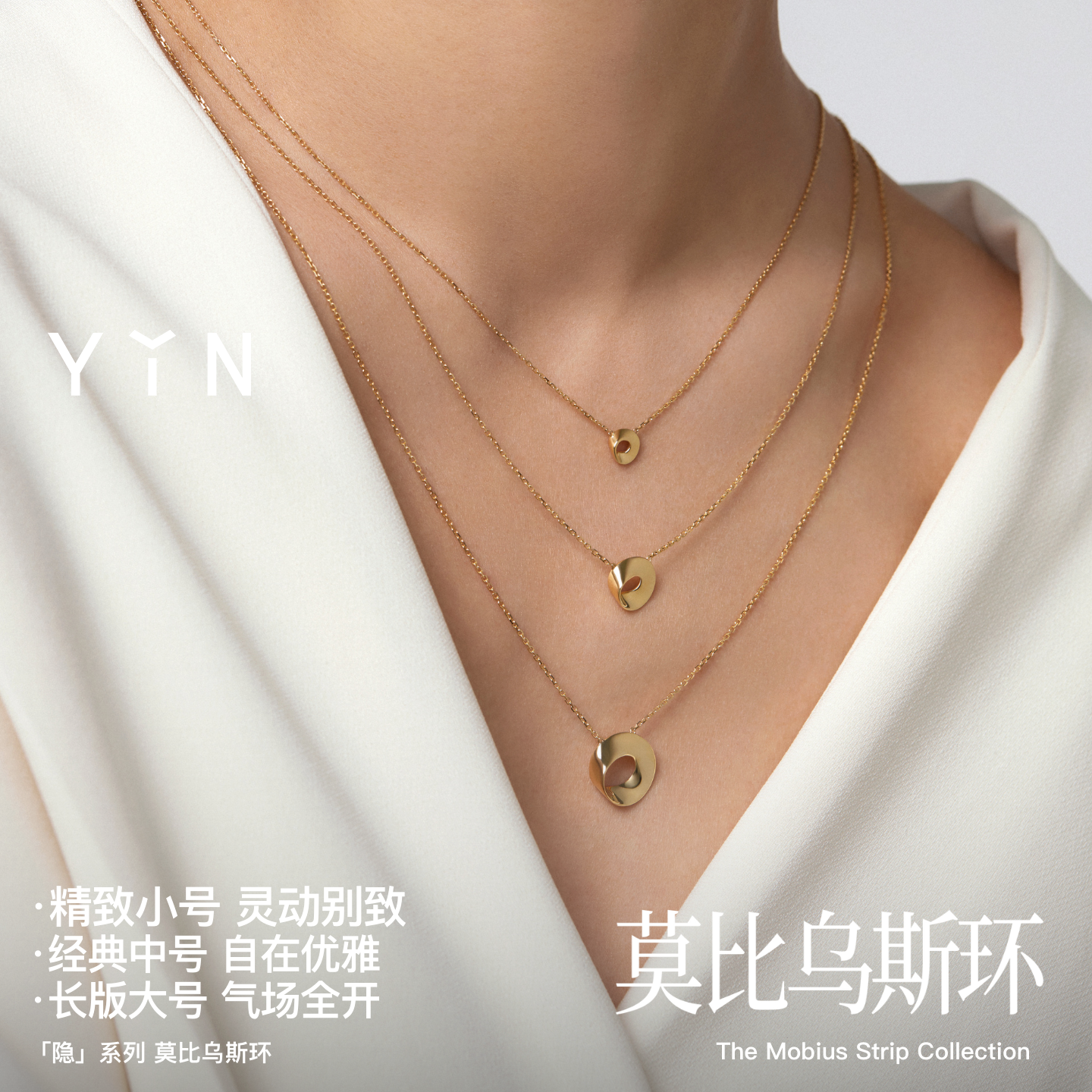 节日礼物YIN隐 莫比乌斯环18K金项链锁骨链Au750项链珠宝礼物