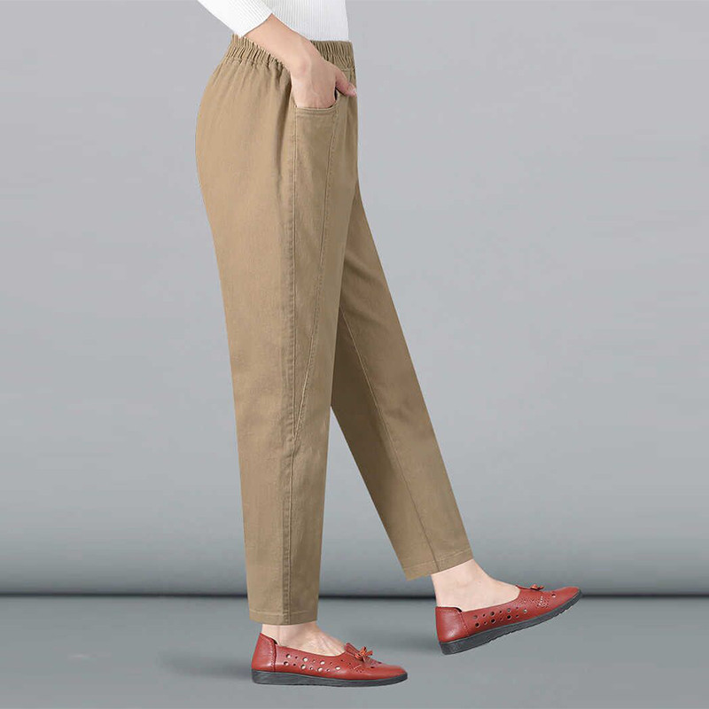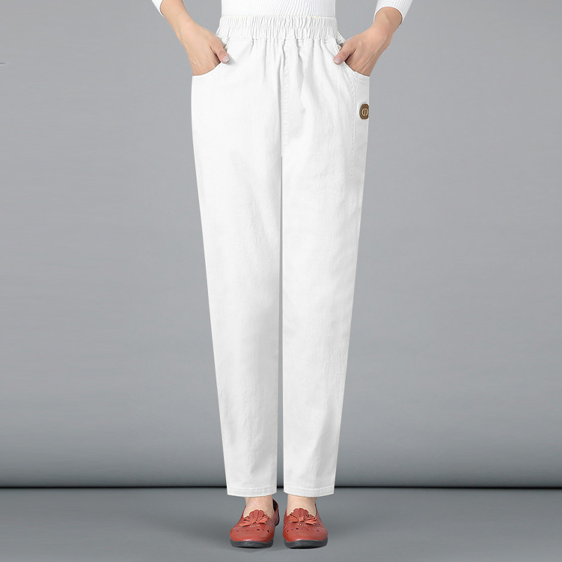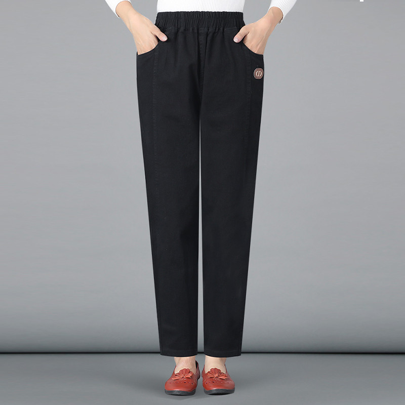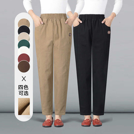 纯棉休闲裤女秋冬季新款中老年百搭高腰妈妈哈伦裤直筒宽松长裤子