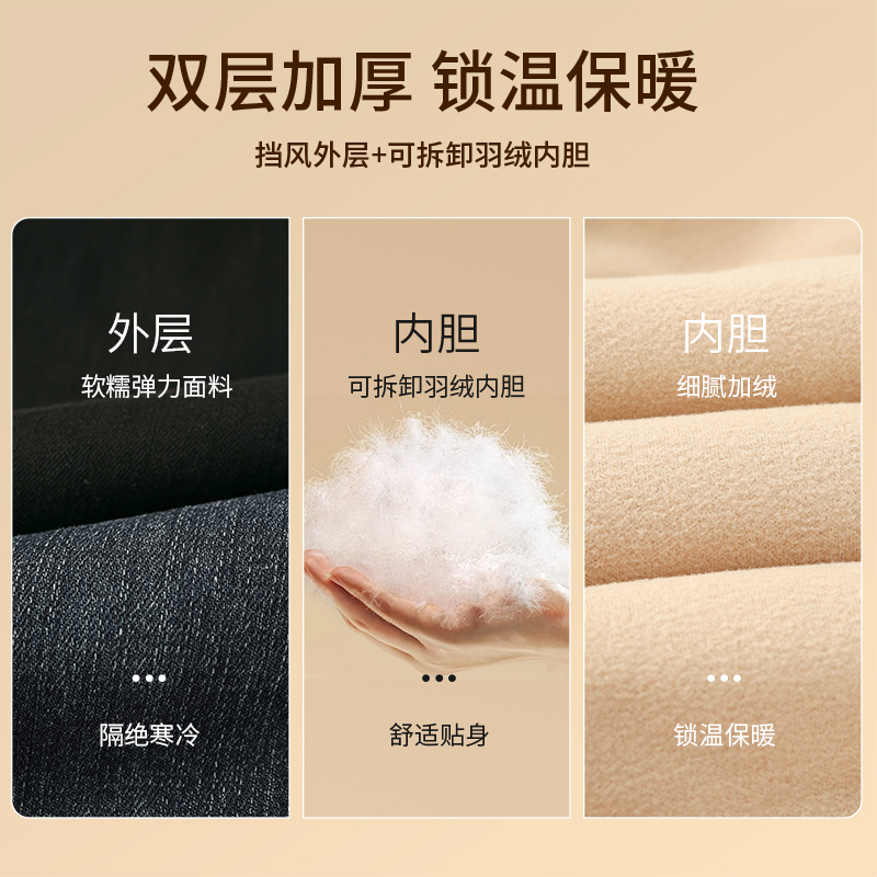 娅丽达羽绒裤加厚直筒牛仔裤女加绒裤子2025冬季新款鸭绒黑色女裤
