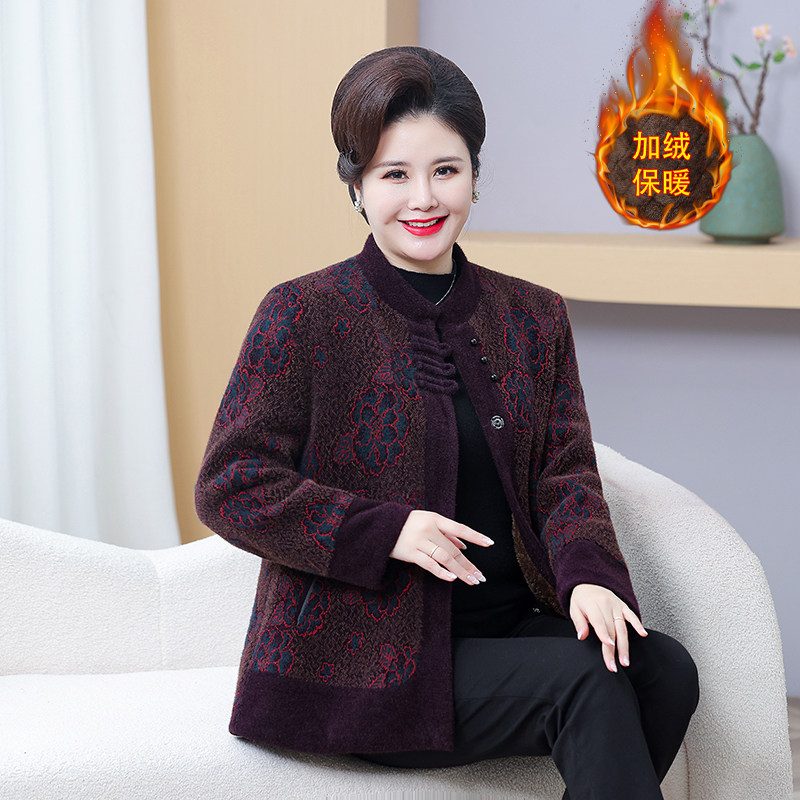 中老年加肥特大码外套奶奶装冬装加绒老人加厚妈妈仿水貂绒大衣服